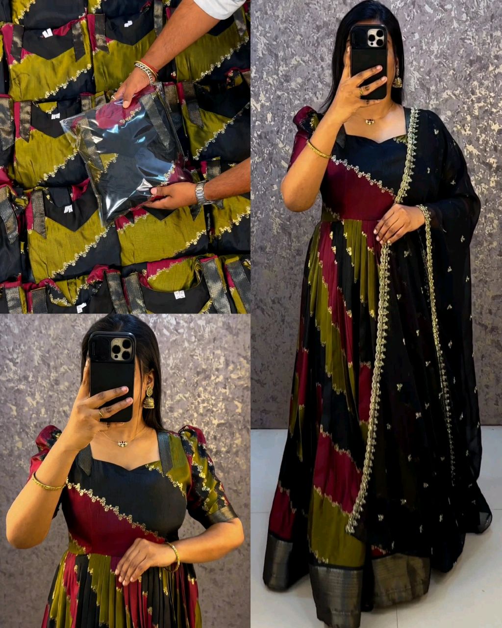 Most Trending Design Anarkali With Duaptta 🔸Fabric: Heavy marshmellow blooming colour and foil dijhayne saree 🔸GOWN :- *FULL STITCHED WITH FANCY NECK 🔸LENGTH:- 55INCH 🔸FLAIR :- 4.30 M*) 🔸DUPPATA – EMBROIDERY DUPPATA 🔸BASIC BUST SIZE : XS – 34, S – 36, M – 38 in, L – 40 in, XL – 42, XXL – […]