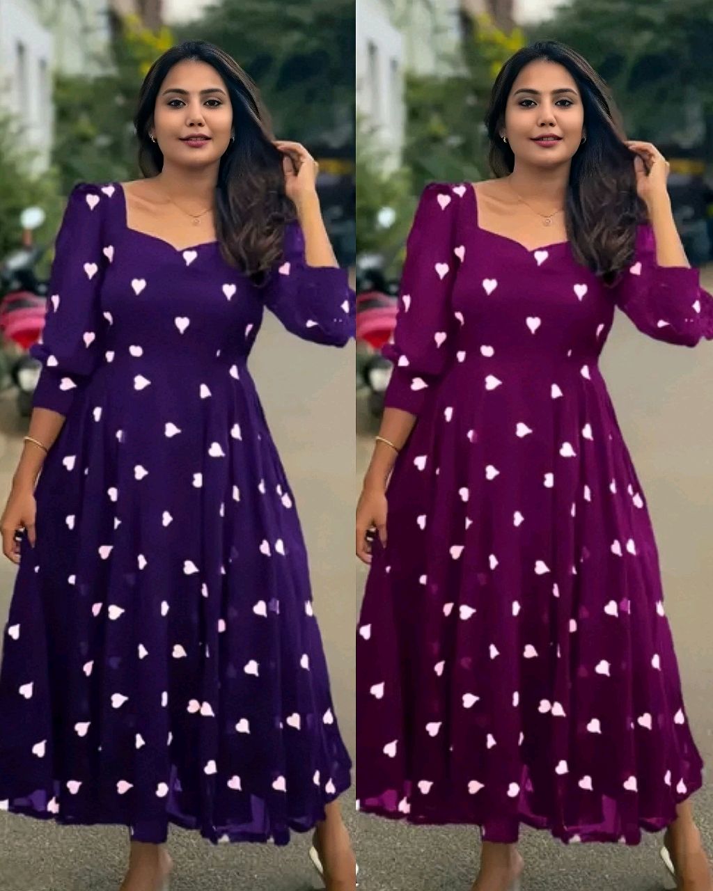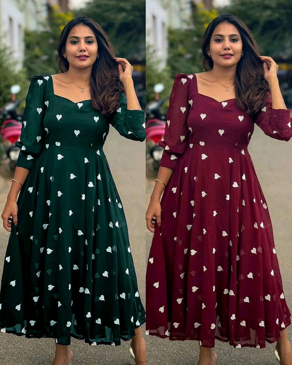 New HEART Frock 🔸Fabric: This Frock features soft Georgette and full lining and attractive Heart work 🔸Length 46+ 🔸BUST SIZE : S – 36, M – 38 in, L – 40 in, XL – 42, XXL – 44, XXXL – 46