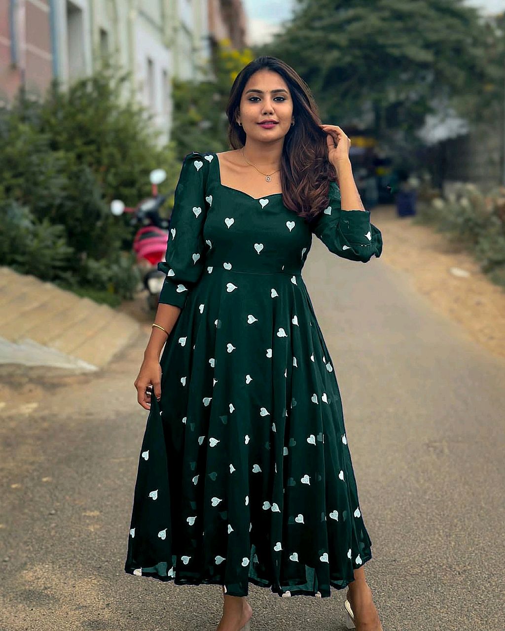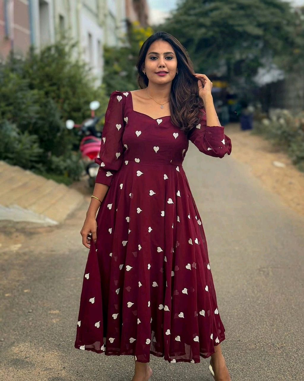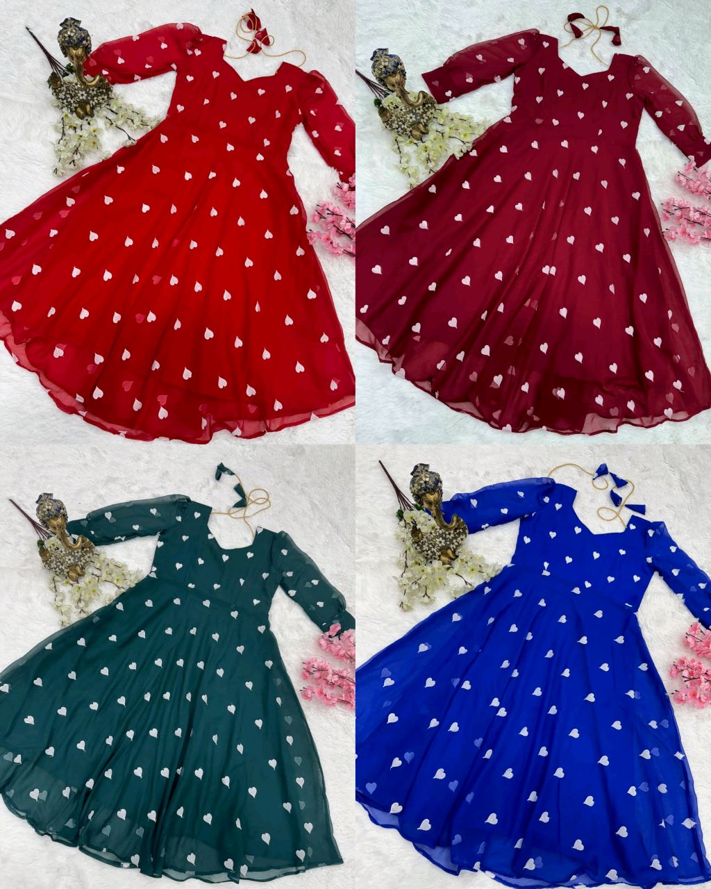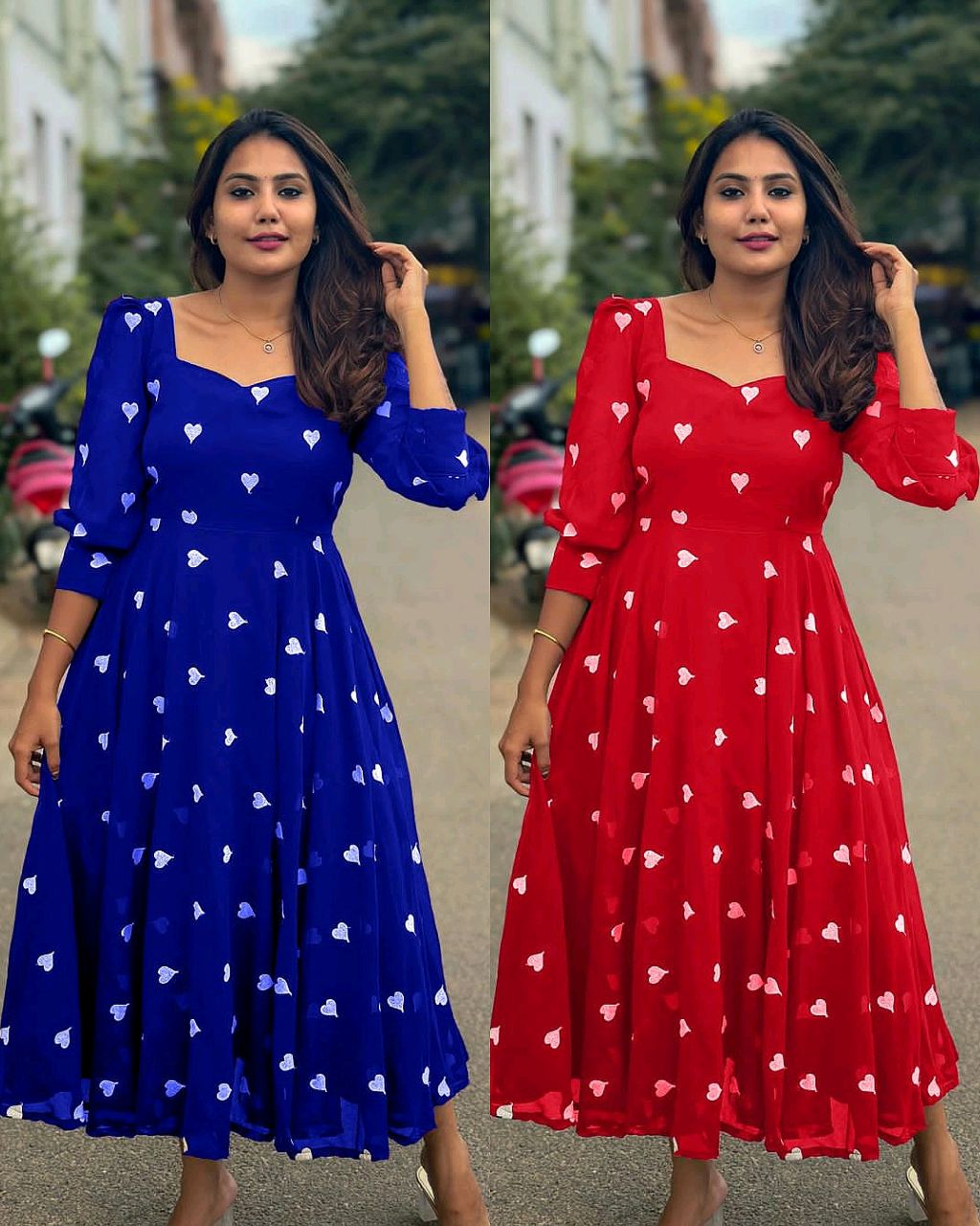 New HEART Frock 🔸Fabric: This Frock features soft Georgette and full lining and attractive Heart work 🔸Length 46+ 🔸BUST SIZE : S – 36, M – 38 in, L – 40 in, XL – 42, XXL – 44, XXXL – 46