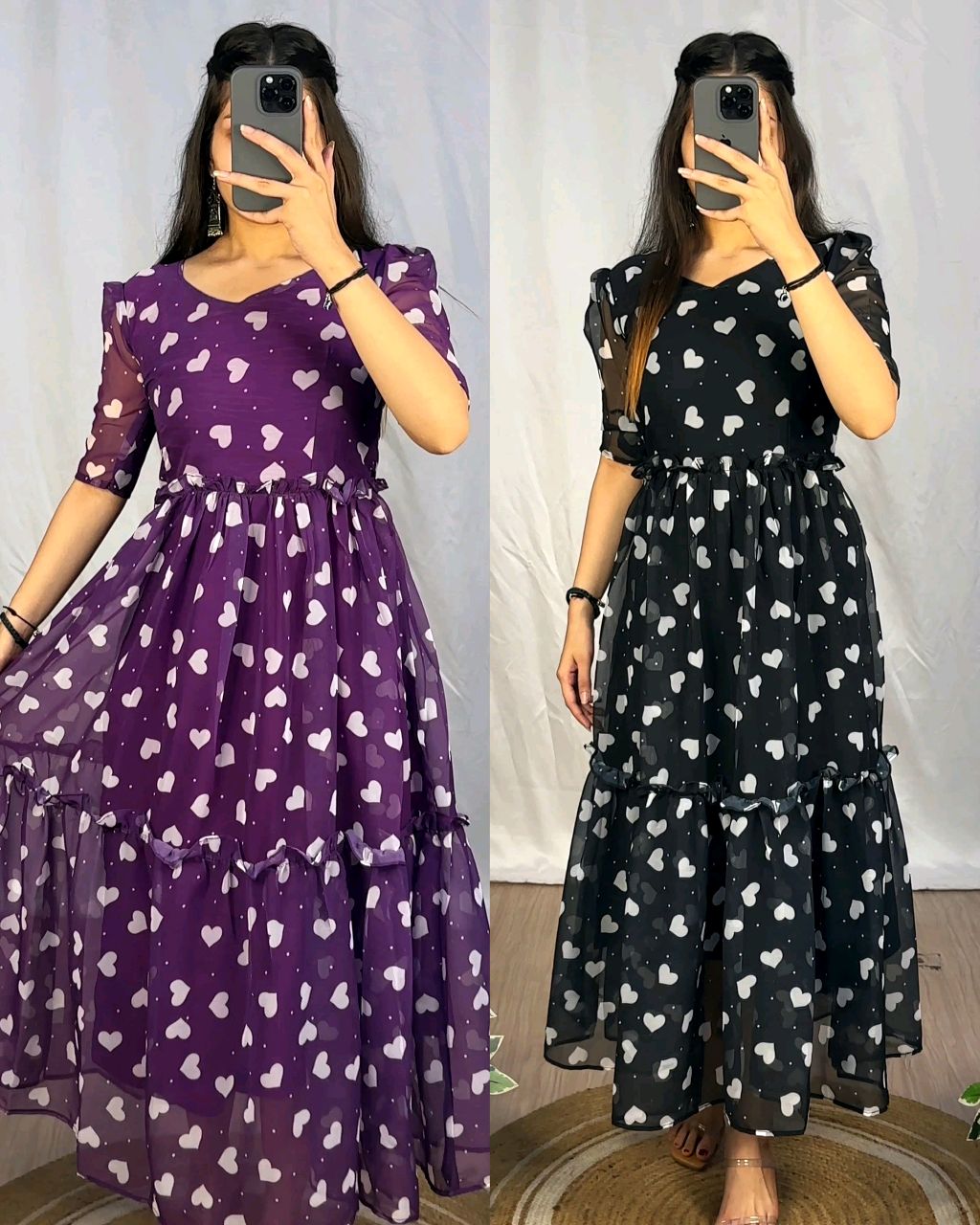 New Heart Style Maxi Gown With Printed Work 🔸Fabric: Georgette 🔸Sleeve Length: Short Sleeves 🔸Pattern: Printed 🔸Net Quantity (N): 1 🔸BUST SIZE : S – 36, M – 38 in, L – 40 in, XL – 42, XXL – 44, XXXL – 46