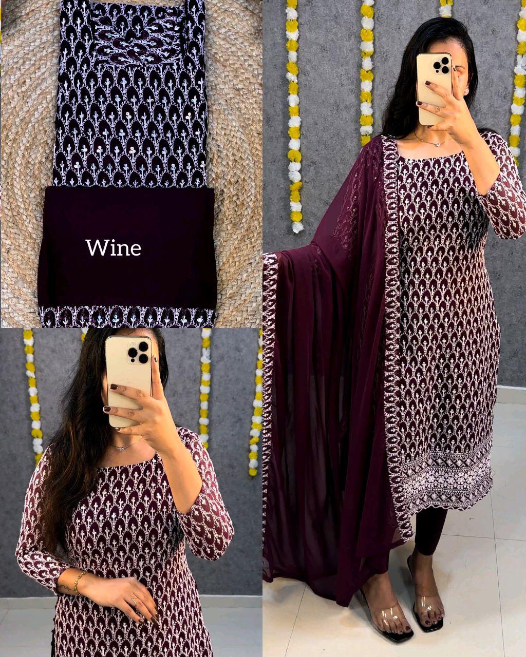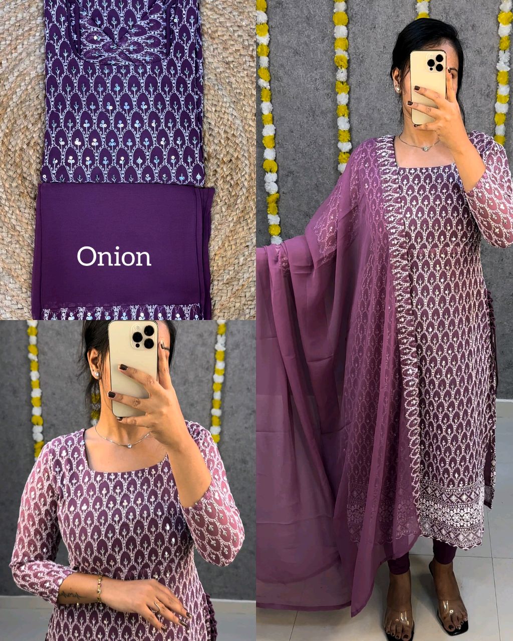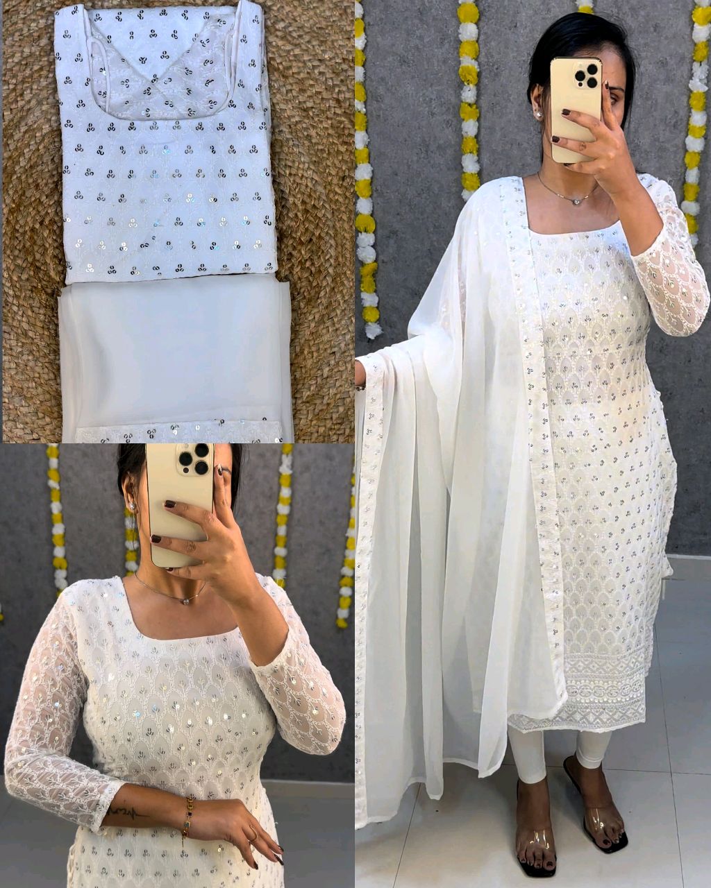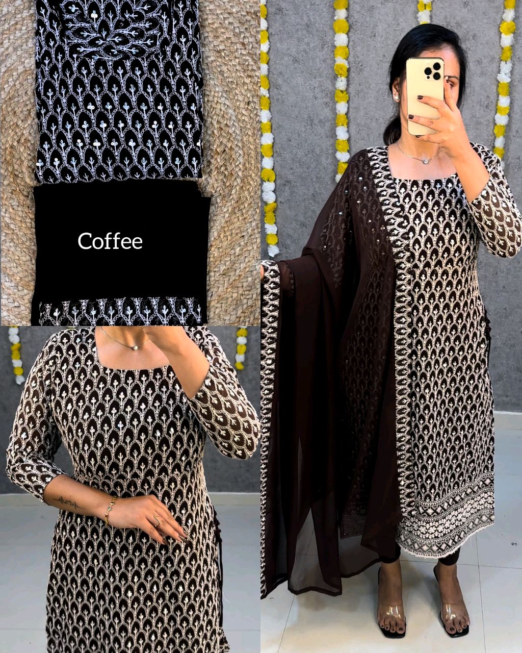 🔸Fabric: georgette with full sequence work ( front + back )