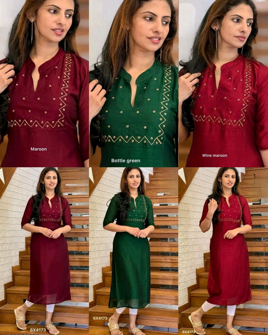 New launching festival special kurti 🔸Fabric: fox Georgette 🔸Length*: 52 🔸Flare: 4 🔸Work: Beautiful Handwork on Full Sleeve (22 .) 🔸BUST SIZE : S – 36, M – 38 in, L – 40 in, XL – 42, XXL – 44