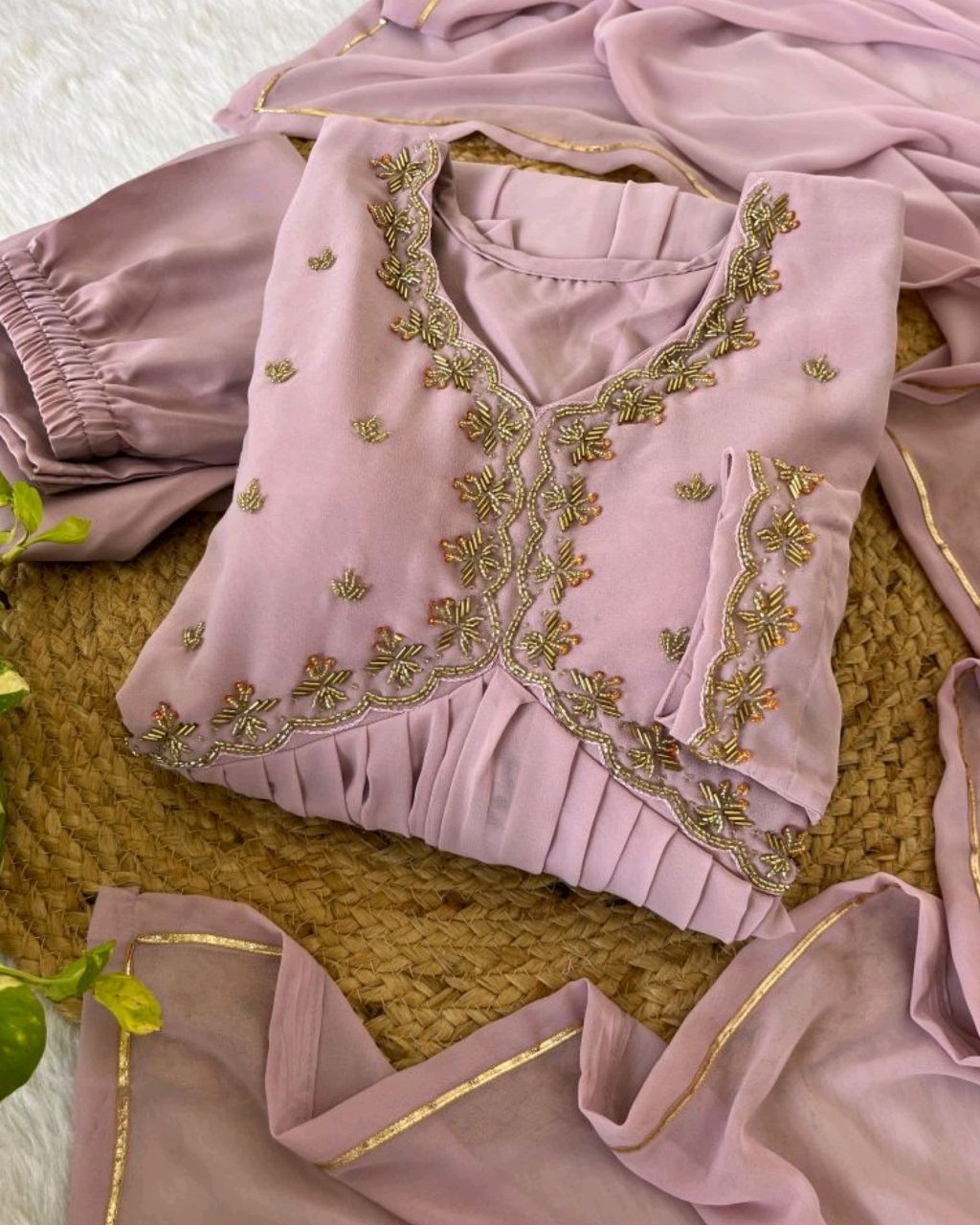 🔸Pant – Butter Creap Soft with WaistElastic Ankle Length and Bottom Additional Fancy Piping