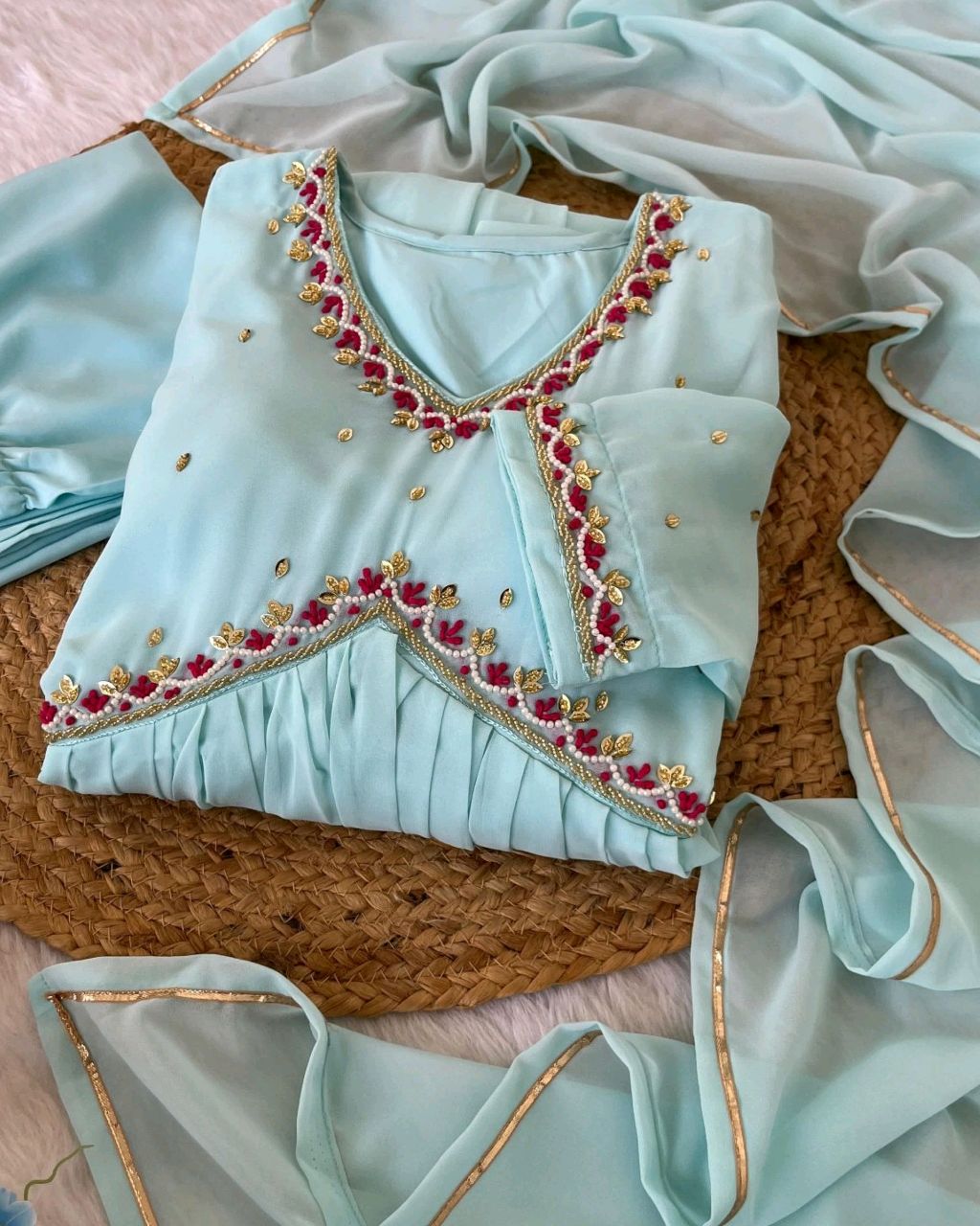 🔸FABRIC : Georggete Printed Multi Color Beautiful Hand mand and Flair 3.5MTR Approx 🪷