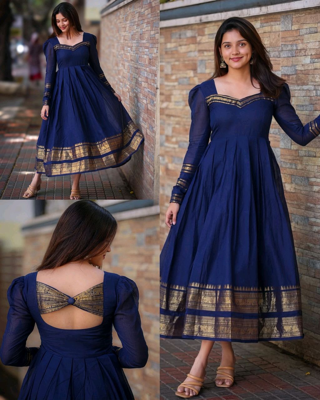🔸Fabric: This BlueBerry Maxi made from Silk Cotton fabric with Jacquard Weaving Jari With back side butterfly pattern And full flair