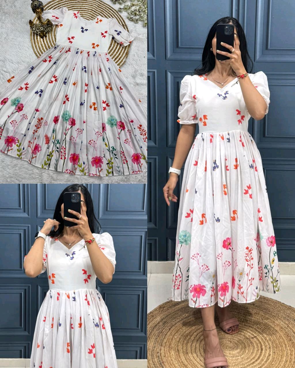 New Super Trendy stylish sleeves pattern Frock 🔸Fabric: muslin cotton 🔸Weight 420 grm 🔸Length – 46+ 🔸BUST SIZE : S – 36, M – 38 in, L – 40 in, XL – 42, XXL – 44, XXXL – 46