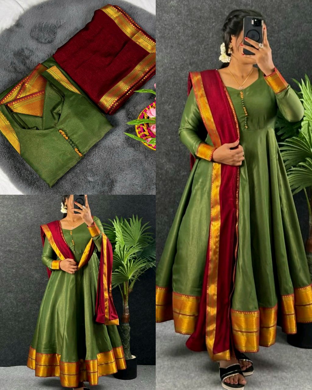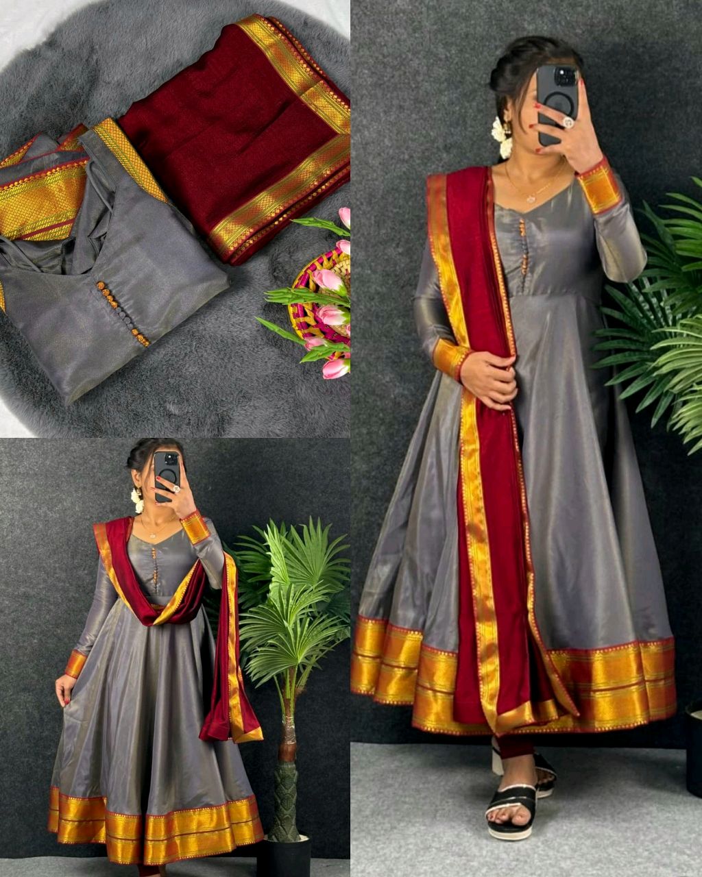 New Super Trendy Traditional Outfit 🔸FABRIC : Russian silk (Cosmos)with kanjeevaram zari border with complete lining*🎉 🔸Inner fabric*:- *heavy micro* 🔸Gown Length*:- *48-50*🥰 🔸Sleeves length -22 inches* 🔸Flair*:- *4 metrer*💥 🔸Dupatta*:- *vichitra silk with kanjeevaram Zari lace border all sides 2.10 mtr*🥰 🔸BUST SIZE : XS – 34, S – 36, M – 38 in, […]