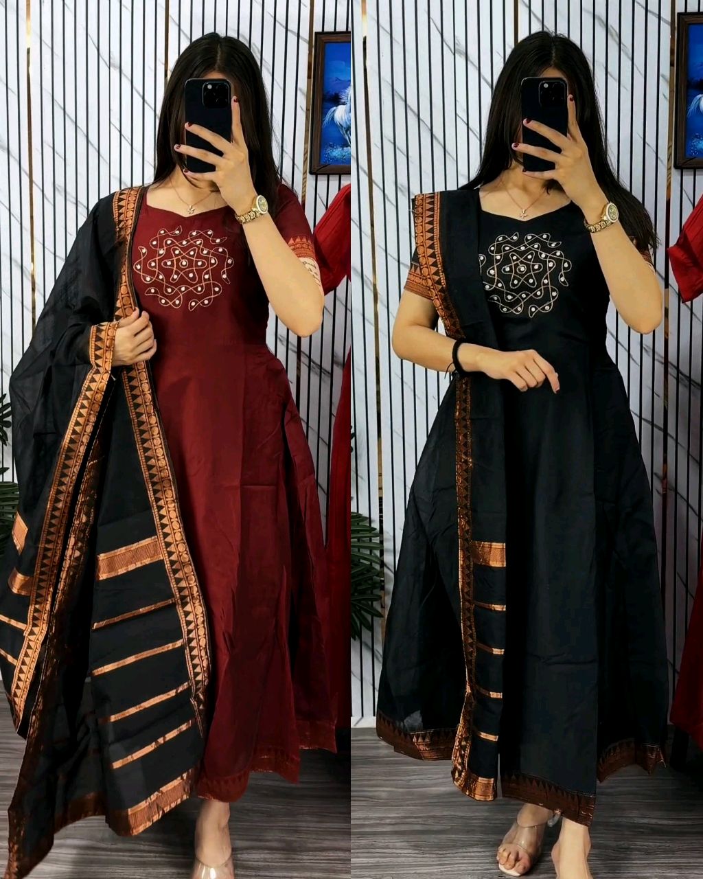 🔸Fabric: This top made from Pattu cotton fabric with Jacquard weaving zari border And Duppatta with lace border