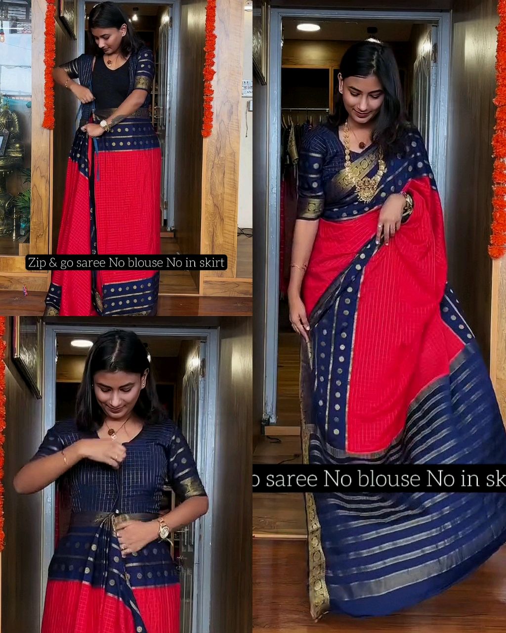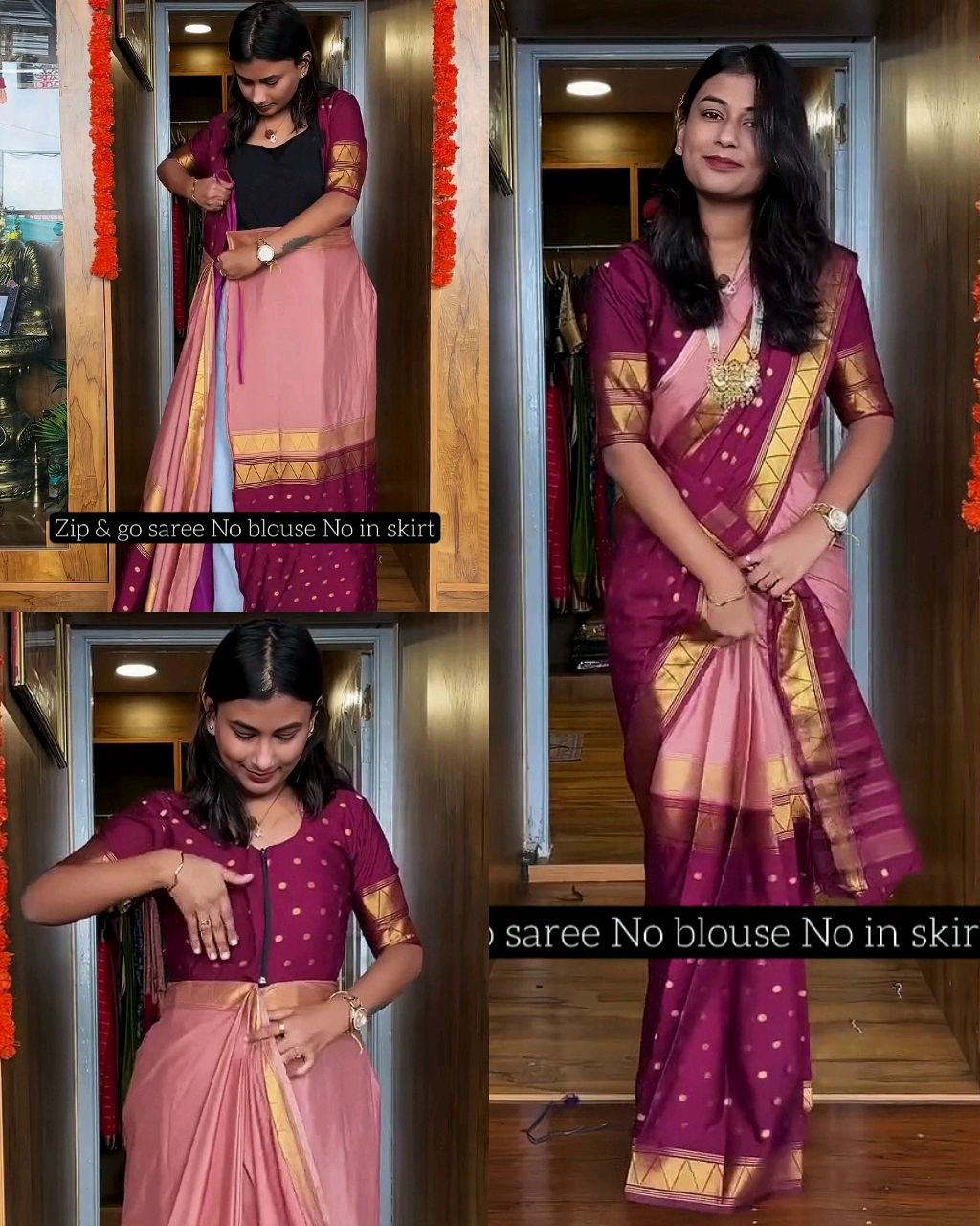 New Trending Zip & Go saree 🔸FABRIC : Mysore Silk 🔸INNER:Micro Cotton 🔸Work:Jequard 🔸Length:56-58 🔸Size:M(38) L(40) XL(42) XXL(44)Upto 3xl margin