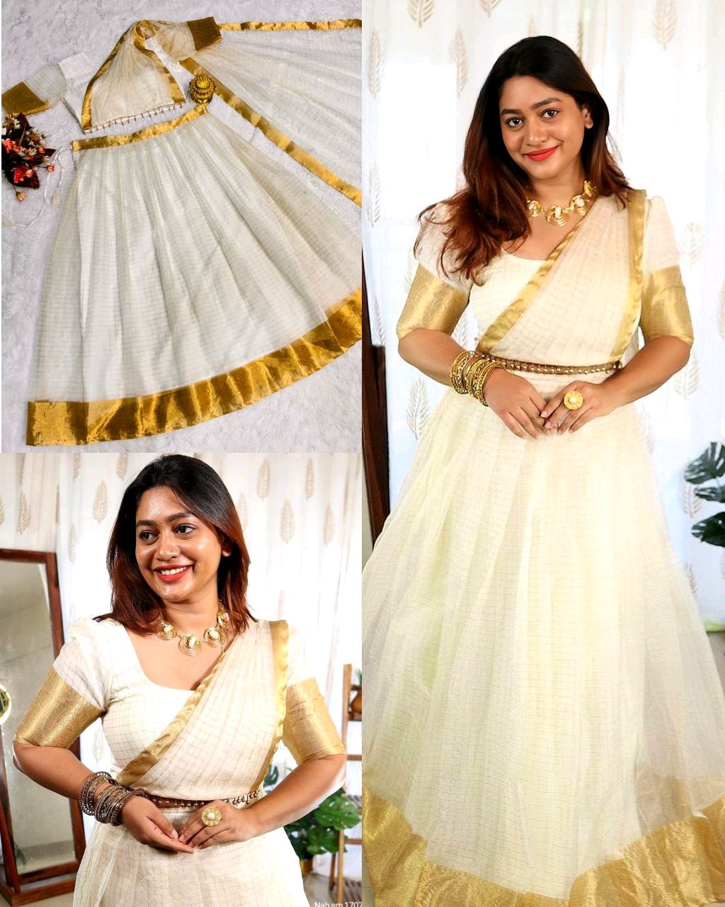 Onam super hit Organza Chex Lehenga Choli with Golden Jacquard work
