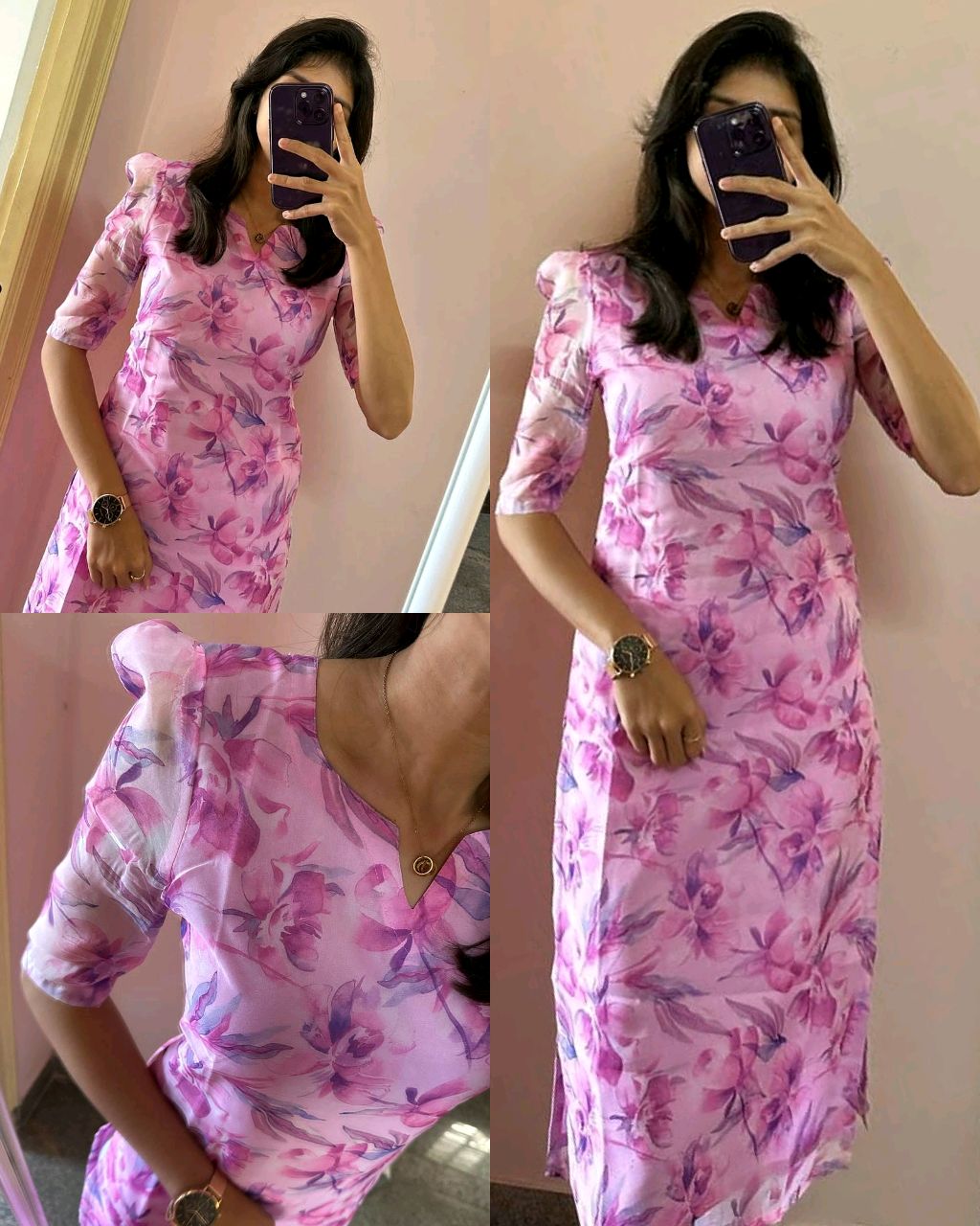 Sold out all size🚫 Trendy Amazing Kurti 🔸Fabric: Organza Pink Print 🔸LINNING :-Cotton Linning 🔸LENGT:- 43 Inch 🔸BUST SIZE : S – 36, M – 38 in, L – 40 in, XL – 42, XXL – 44, XXXL – 46, 4XL – 48, 5XL – 50