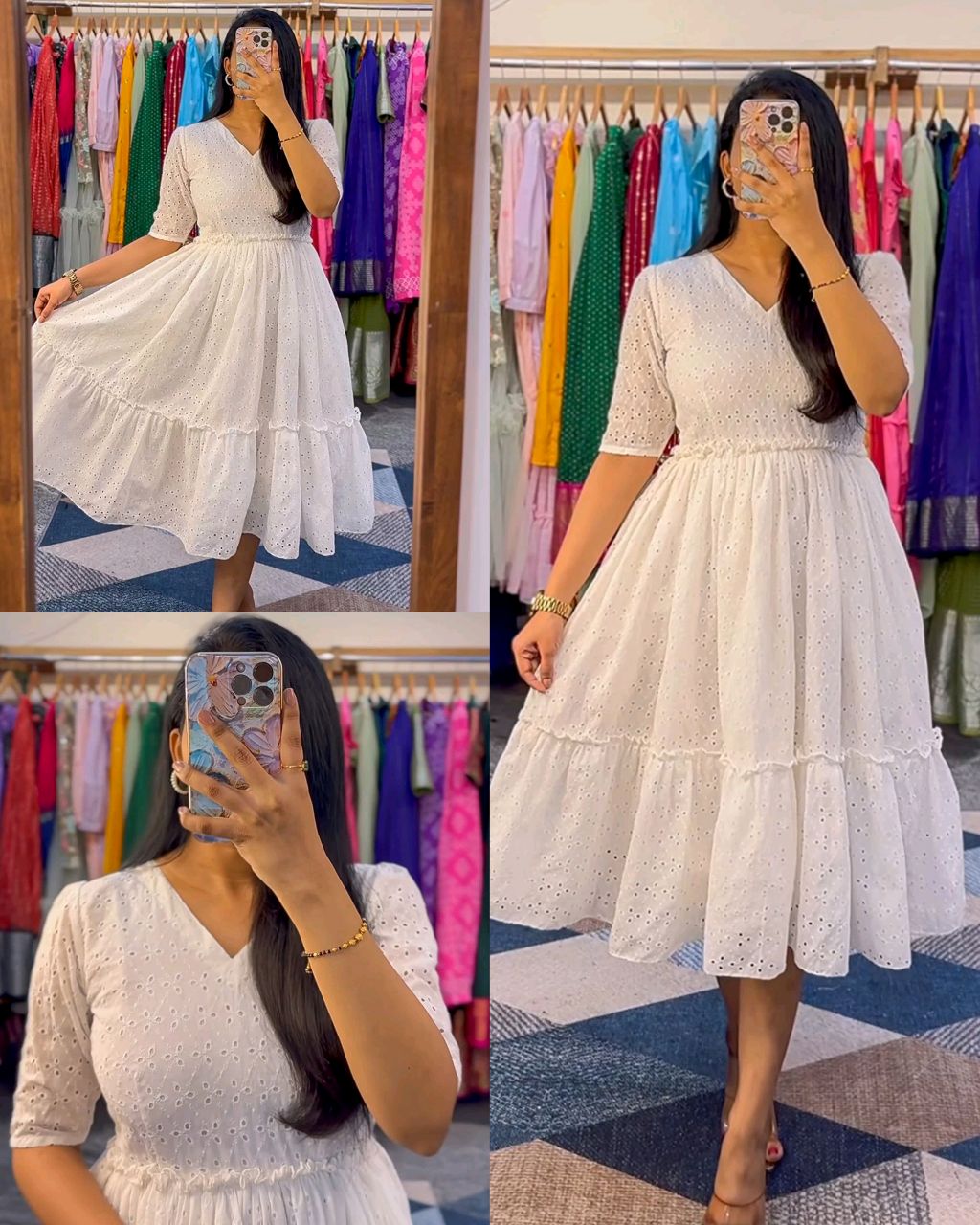 POPCORN MAXI🤍✨ 🔸 Fabric: Cotton Schiffli 🔸Complete Linning 🔸Length:- 48 inches 🔸SIZE : M(38) L(40) XL(42) XXL (44)