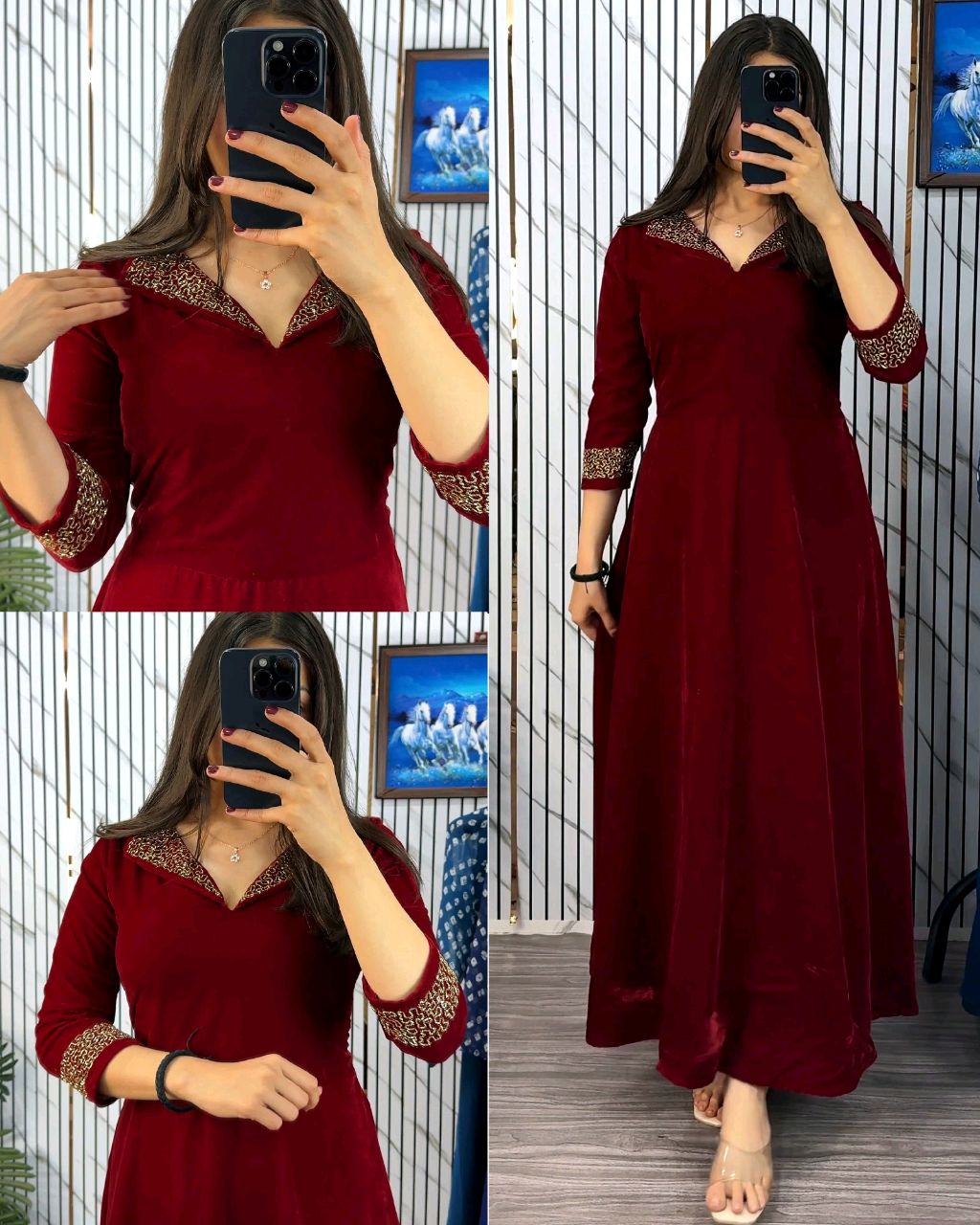 🔸Fabric: Premium 9000 Velvet with Designer Hand Work*