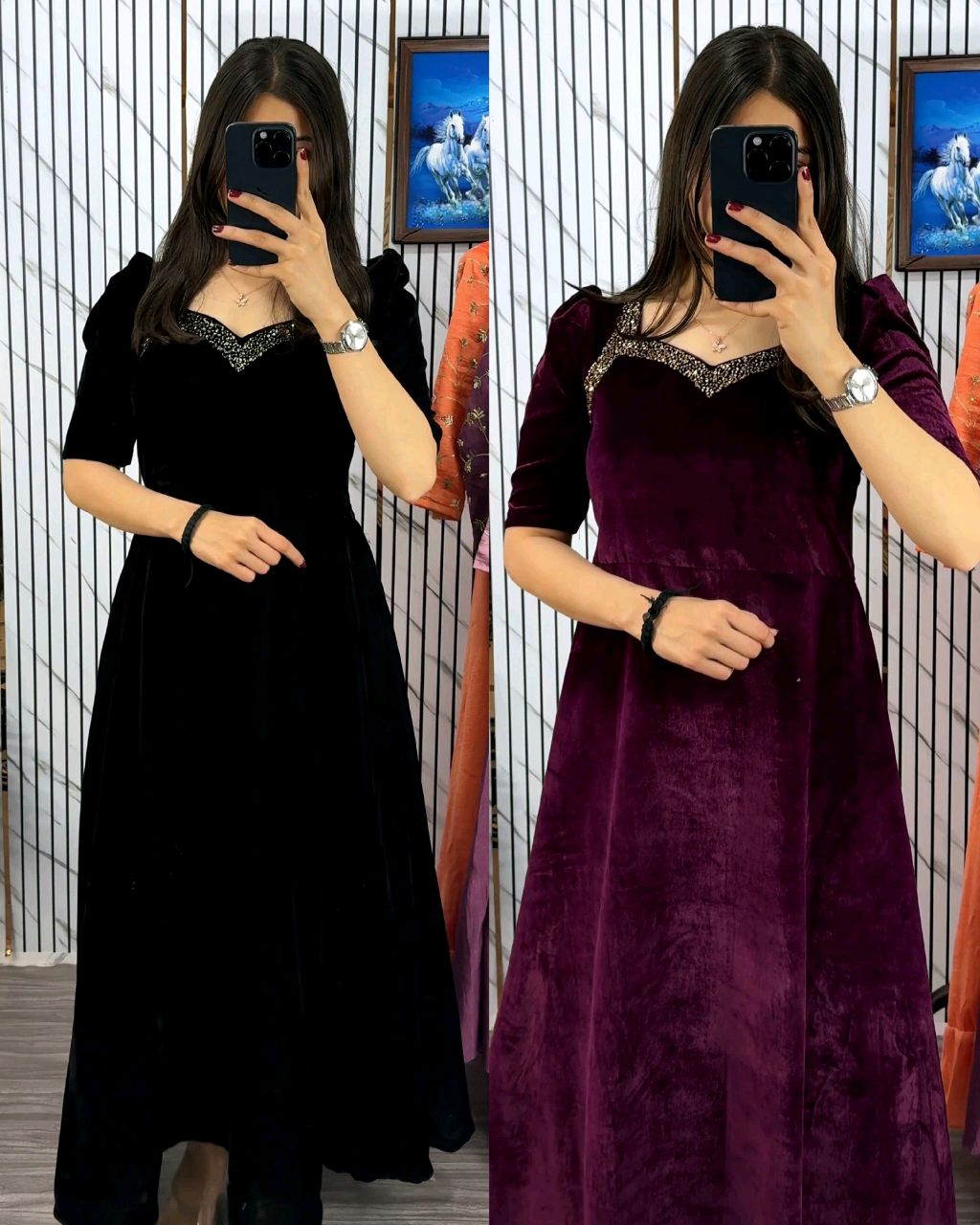 Premium 9000 Velvet Fabric with Designer Hand work Gown- A Beautiful Blend Of elegance and Floral Charm For This Wedding and festival 🔸Fabric: Premium 9000 Velvet with Designer Hand Work* 🔸LENGTH :-* 44+ 🔸LINING :-* micro cotton 🔸Package Contain*: Gown 🔸BUST SIZE : XS – 34, S – 36, M – 38 in, L – […]