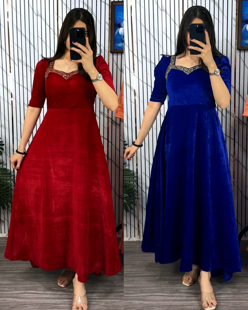 Be the first to review “Premium 9000 Velvet Fabric with Designer Hand work Gown- A Beautiful Blend Of elegance and Floral Charm For This Wedding and festival”