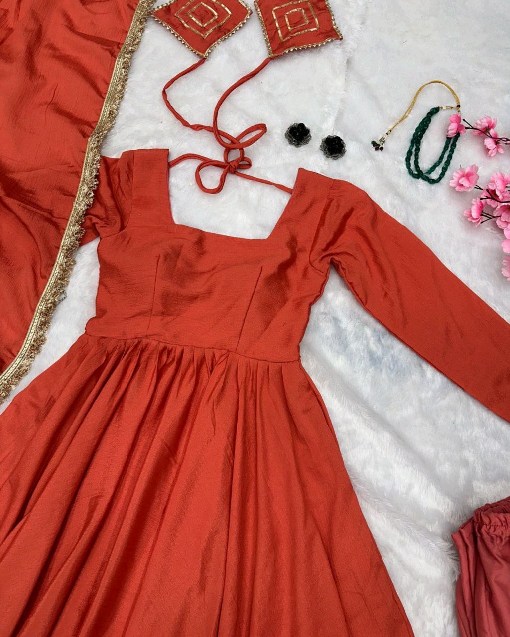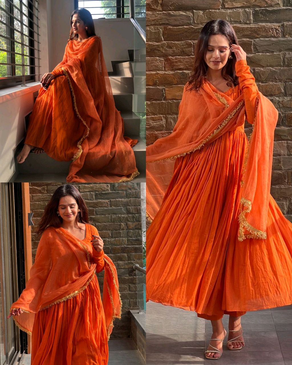 🔸Fabric : 1st orange Kora Muslin / chinnon silk anarkali !!!