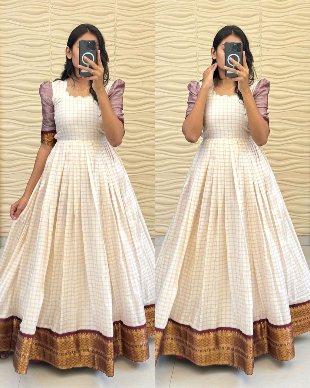 PRESENT SOUTH SPECIAL GOWN COLLECTION 🔸 Fabric : HEAVY COTTON SILK FABRIC WITH Jecared Border along with FULL INNER 🔸FULL STITCHED WITH FANCY NACK* 🔸LENGTH:- 52INCH*, *FLAIR :- 3.5M*) 🔸BUST SIZE : XS – 34, S – 36, M – 38 in, L – 40 in, XL – 42, XXL – 44, XXXL – 46