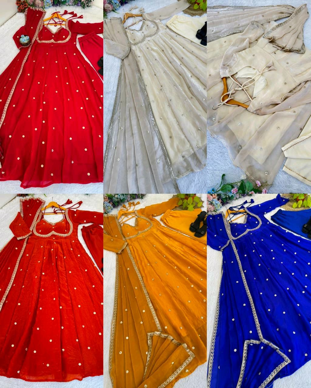 🔸Dupatta : Fendi satin Heavy Four Side Sequence Embroidery Lace Boders , Full Dupatta Allover Butti Sequence Work