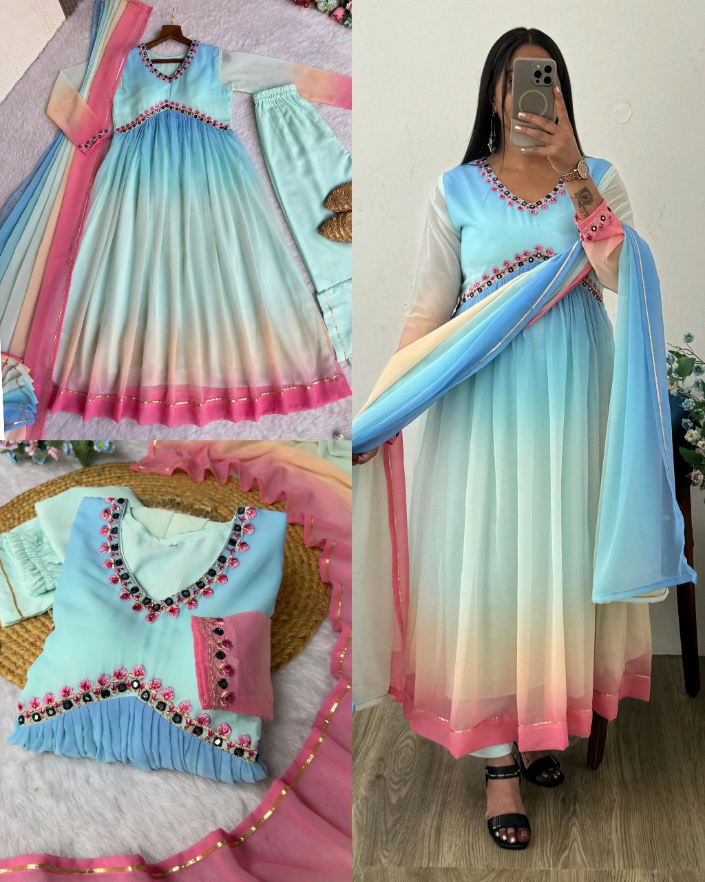🔸Gown : Georgette Heavy Blooming 3D Color ,