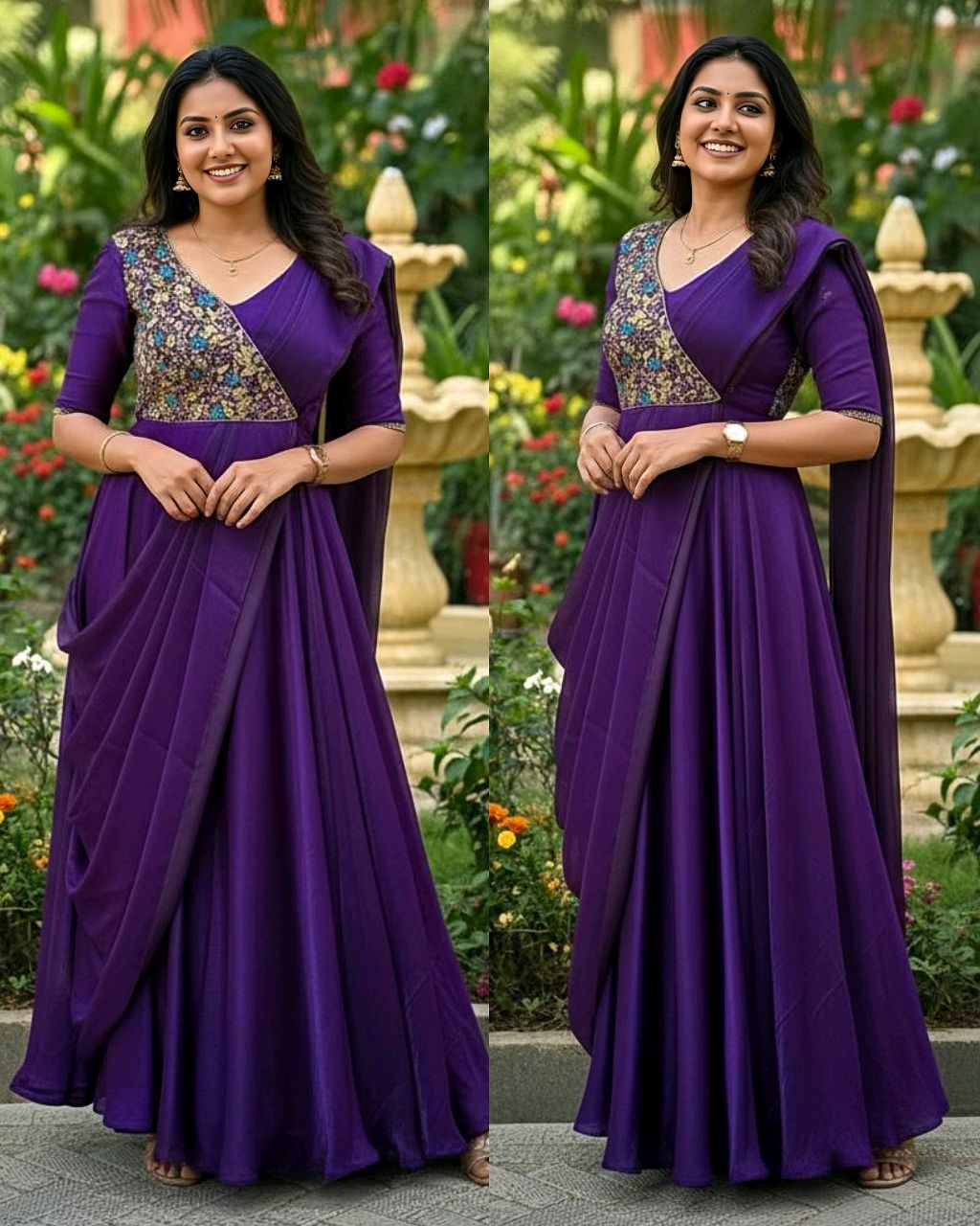 PURPLE 💜 Embroidery Beautiful Thread Work All Over the Yok 🔸Fabric: Glossy Georgette 🔸Slevees 13 inches 🔸 Length 50 “+ 🔸SIZE : S(36) M(38) L(40) XL(42) XXL (44) 3XL (46)