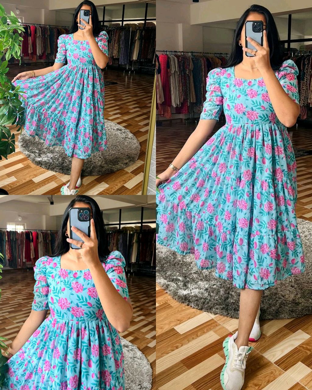Sky Blue Puff Sleeved Flared Dress 🔸Fabric : Georgette 🔸Sleeve Length: Short Sleeves 🔸Pattern: Printed 🔸Net Quantity (N): 1 🔸BUST SIZE : S – 36, M – 38 in, L – 40 in, XL – 42, XXL – 44
