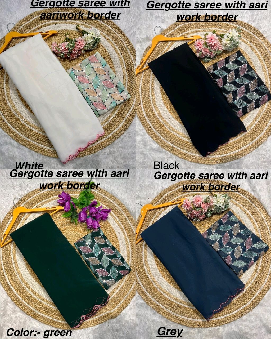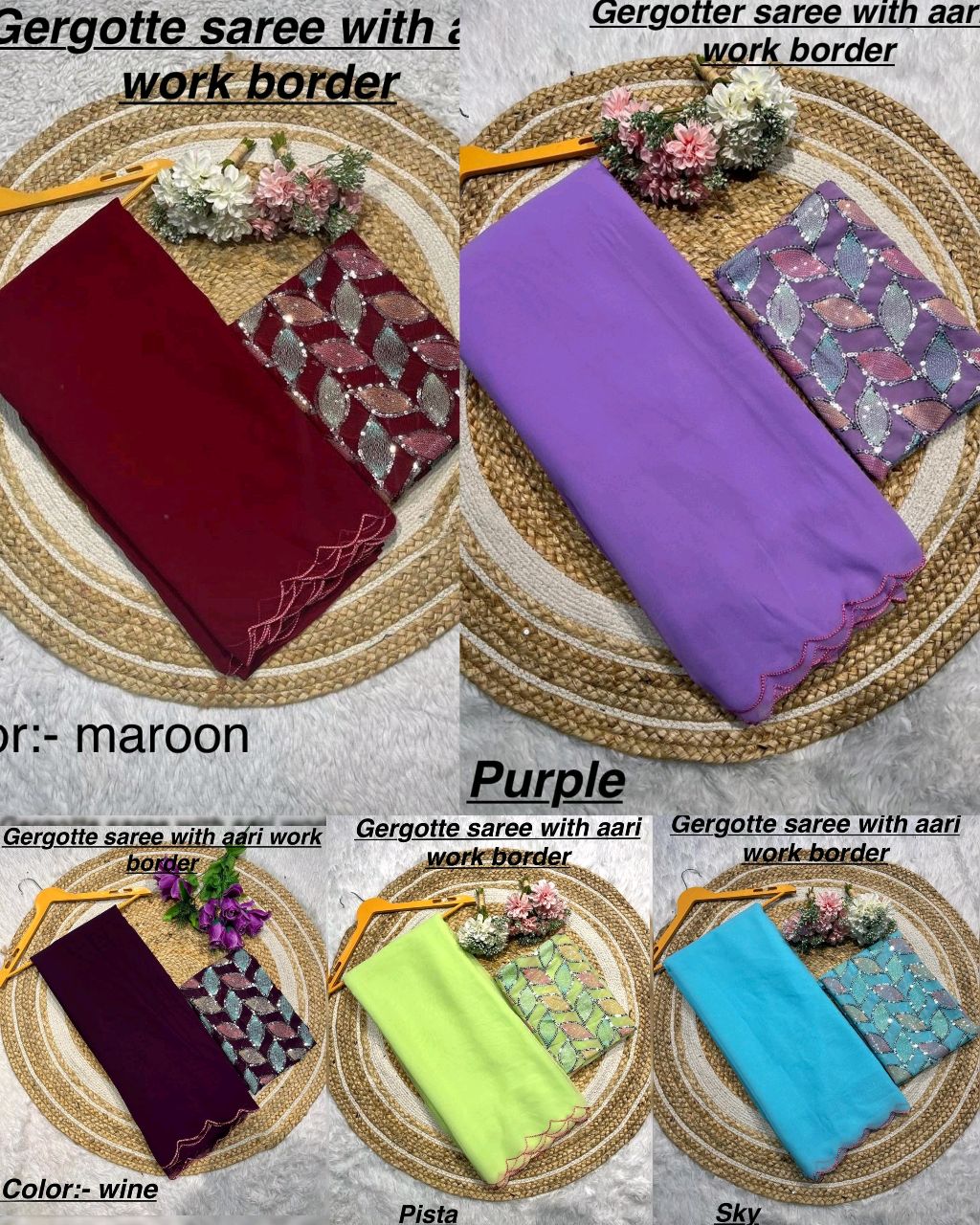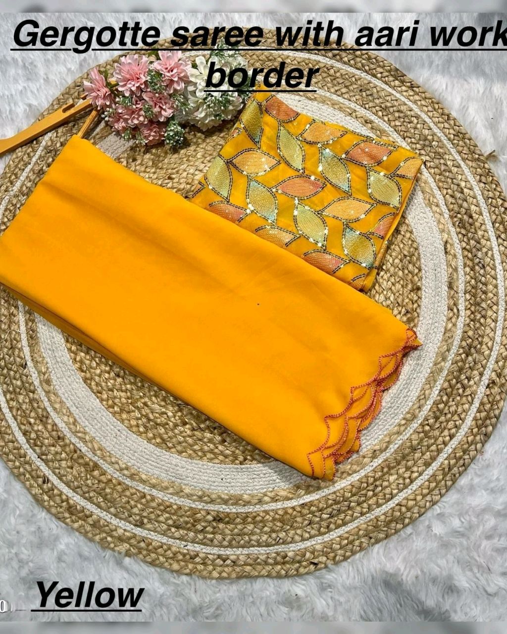 🔸Faux chiffon Aari work saree with embroidery blouse Piece