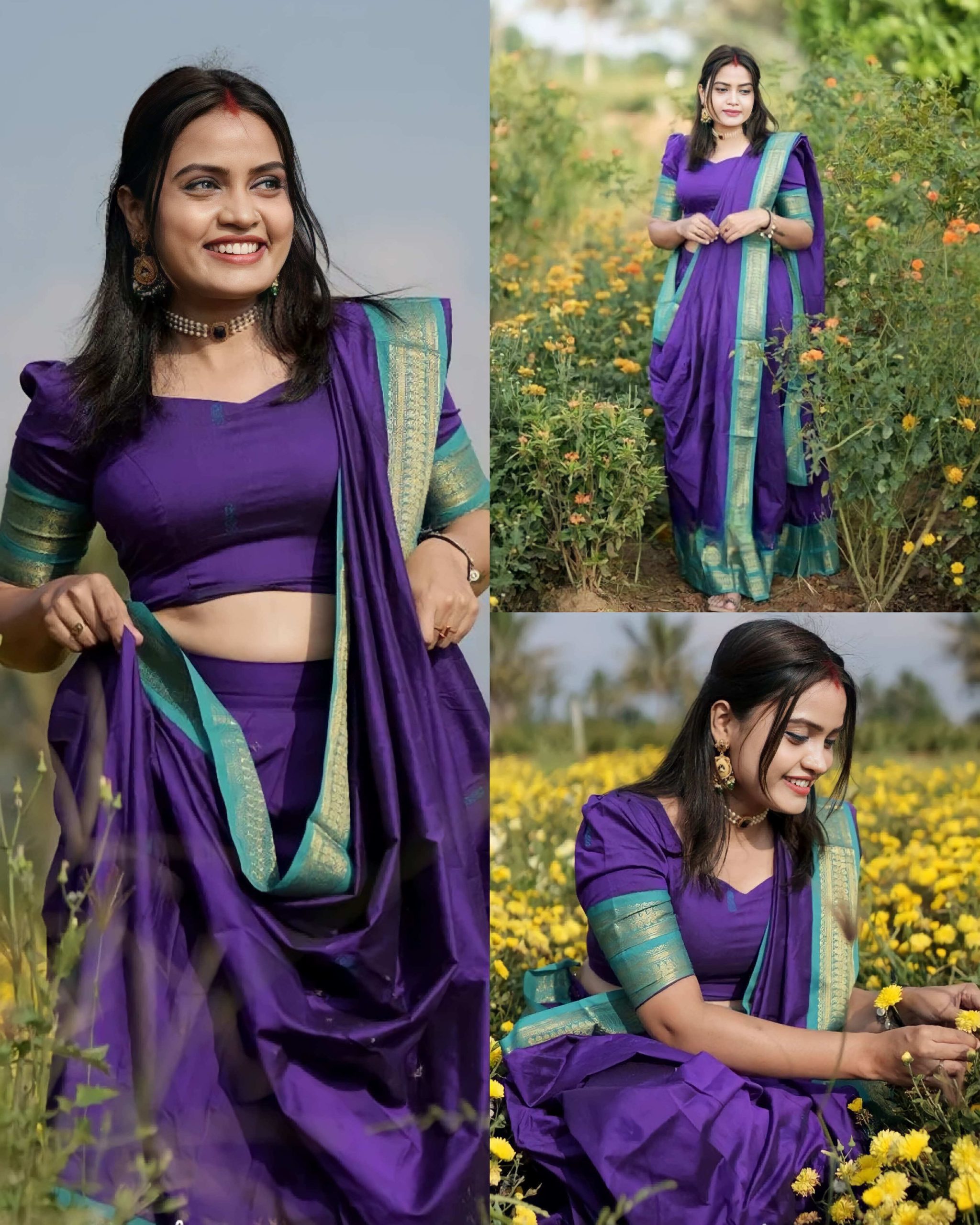 South Indian Traditional Half Saree 🔸Top wear Fabric: Art Silk 🔸Bottomwear Fabric: Art Silk 🔸Dupatta Fabric: Art Silk 🔸Set type: Lehenga Dhavani 🔸Top Print or Pattern Type: Zari 🔸Bottom Print or Pattern Type: Zari 🔸Dupatta Print or Pattern Type: Woven Design 🔸Sizes: Semi Stitched (Lehenga Waist Size: 70 in, Lehenga Length Size: 70 in, Duppatta […]