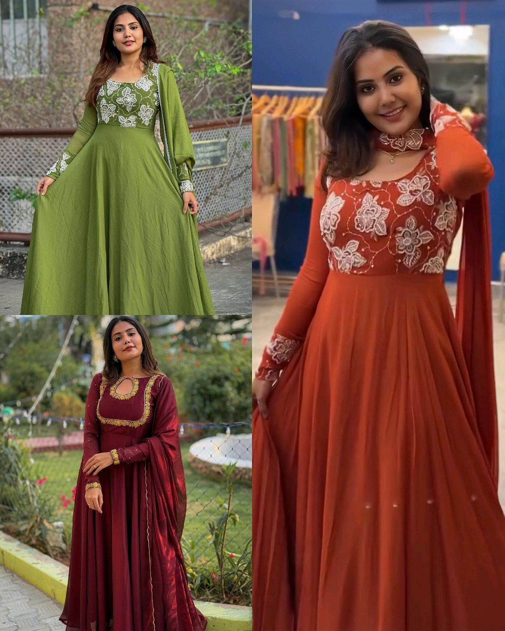 Stay Effortlessly Beautiful In Our Emb Anarkali GREEN ✨ 🔸Material:- Fox Georgette 🔸Complete linning 🔸Length:-50″+ 🔸Sleeve length:- 20″ 🔸Flare 3.5 mrts 🔸Size S-36 M-38 L-40 XL-42 XXL-44