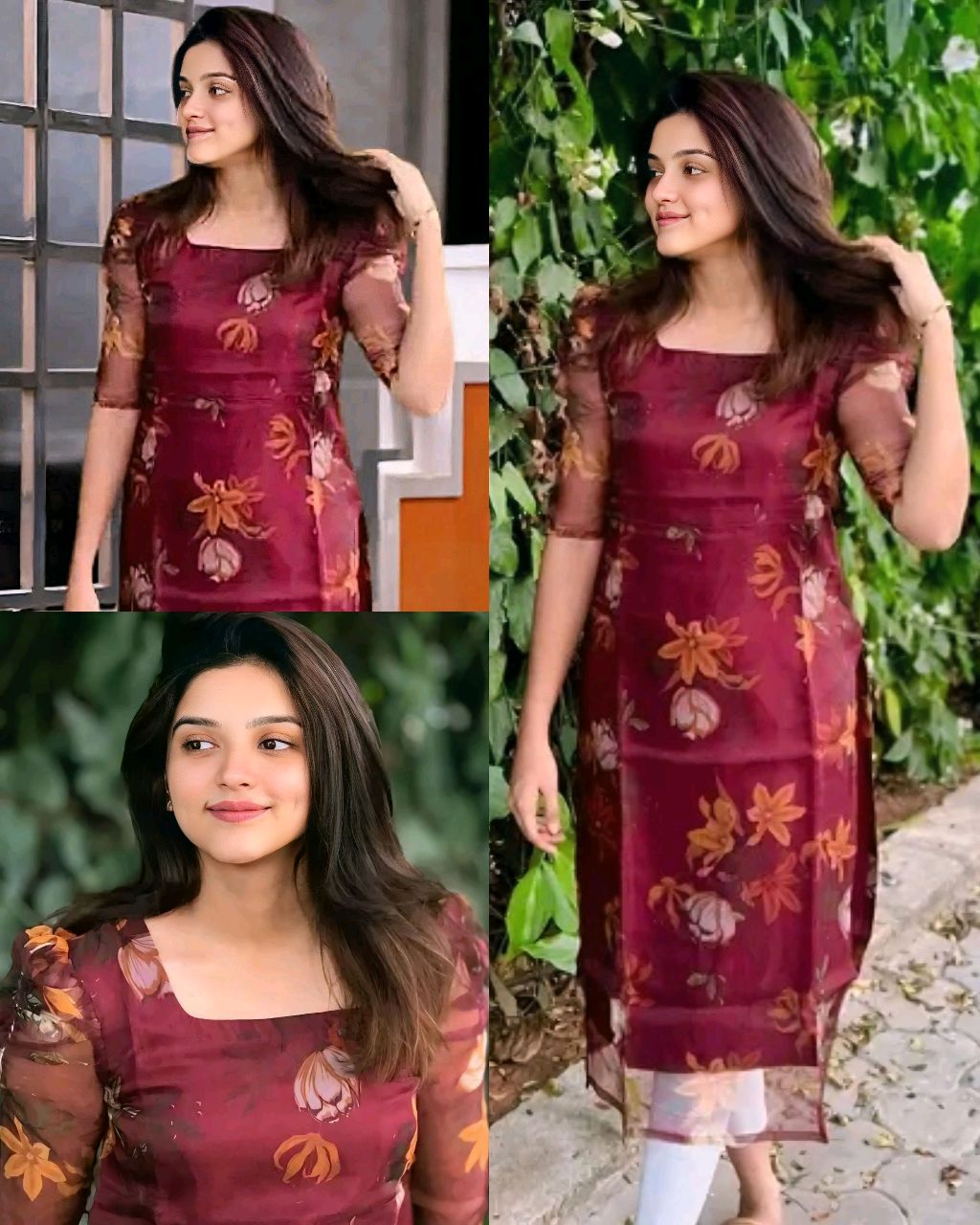 Stylish kurti 🔸Fabric: Organza 🔸Sleeve Length: Three-Quarter Sleeves 🔸Pattern: Printed 🔸Combo of: Single 🔸BUST SIZE : S – 36, M – 38 in, L – 40 in, XL – 42, XXL – 44