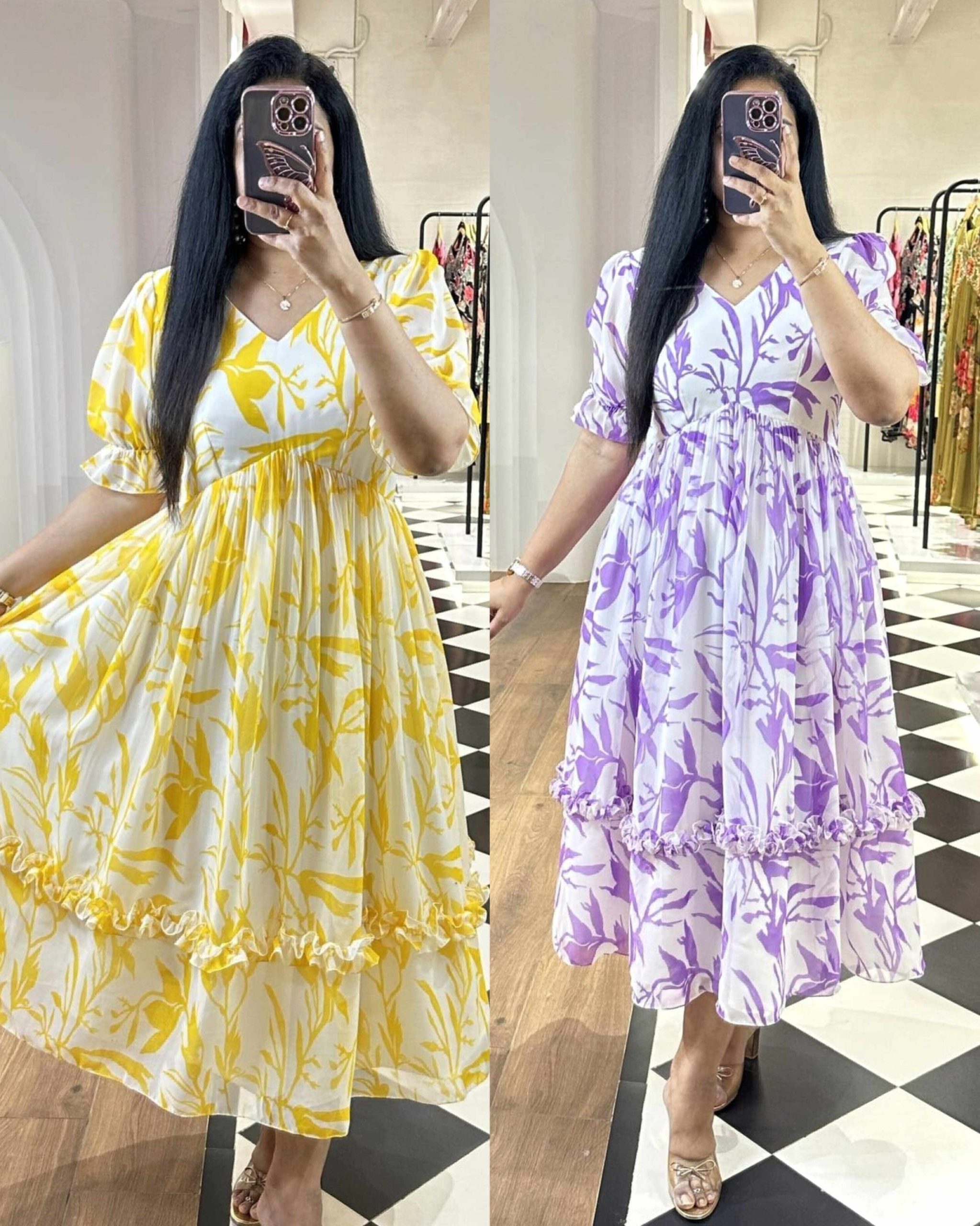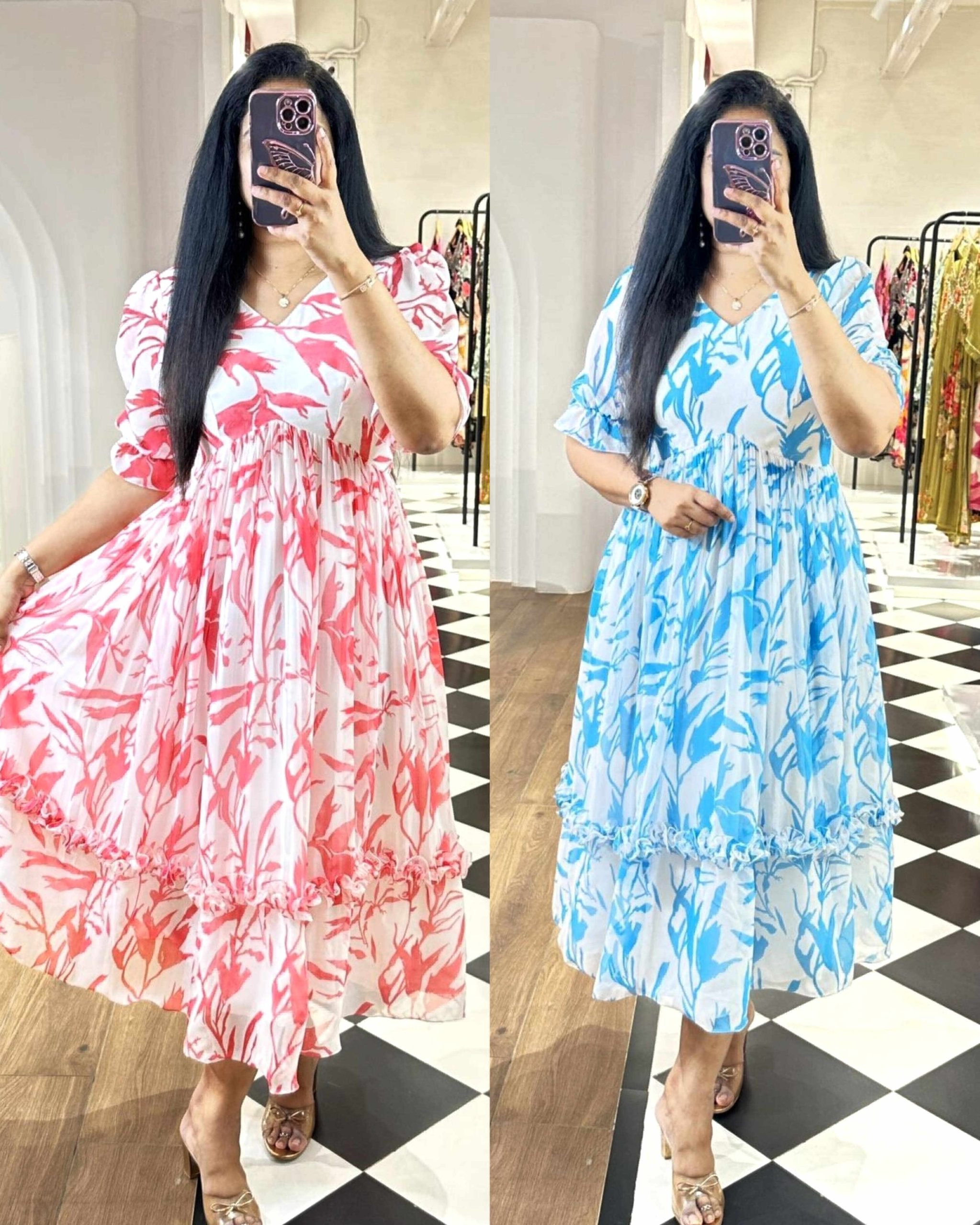 🔸HEVAY GERORRGET WITH DIGITAL PRINT / CREAP LINING AND ATTACHED PADED AND SORT SLEEVE WITH ELASTIC PUFF PETTERN