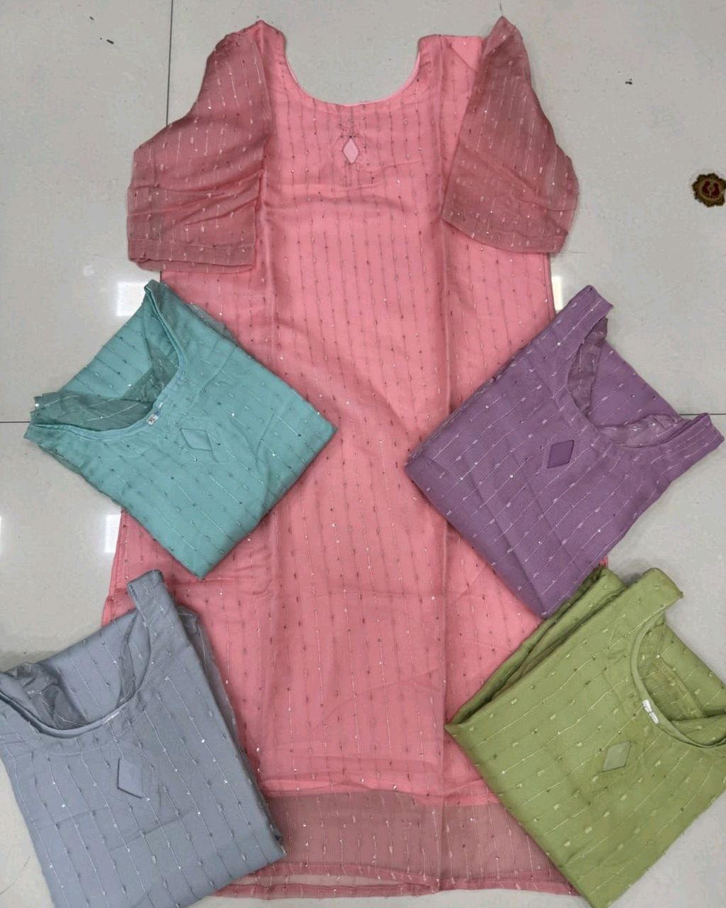 SUMMER kurti🔸Fabric: Heavy Net Orgenza With Embroidery And Sequence Work 🔸INNER :- Crep