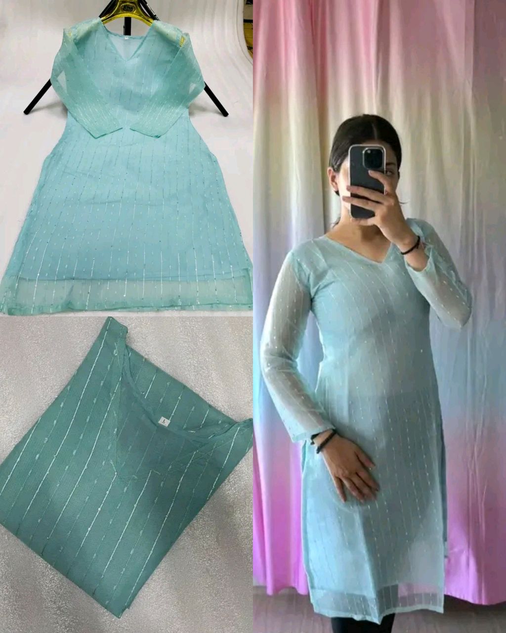 Summer Reason Special Presenting Sequence Soft georgette V shape neck light-weight kurti for daily routine office work and festive