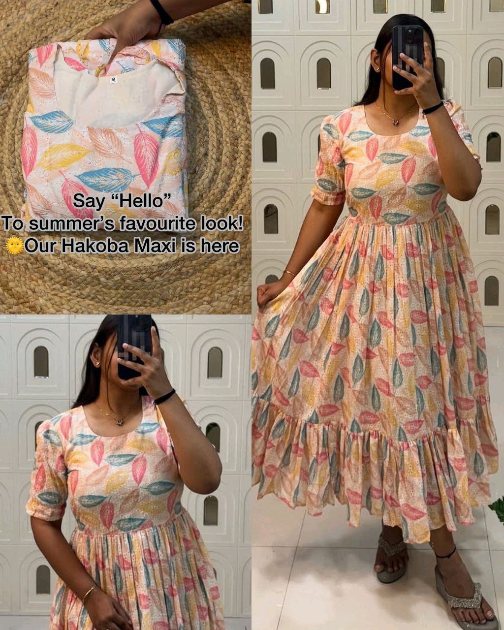 Summer Wear Trending Hakuba Maxi Dress 🔸Fabric : Maxi made from soft Hakoba Cotton with attractive print with Full lining 🔸Complete Linning 🔸Length 50″ 🔸BUST SIZE : S – 36, M – 38 in, L – 40 in, XL – 42, XXL – 44, XXXL – 46