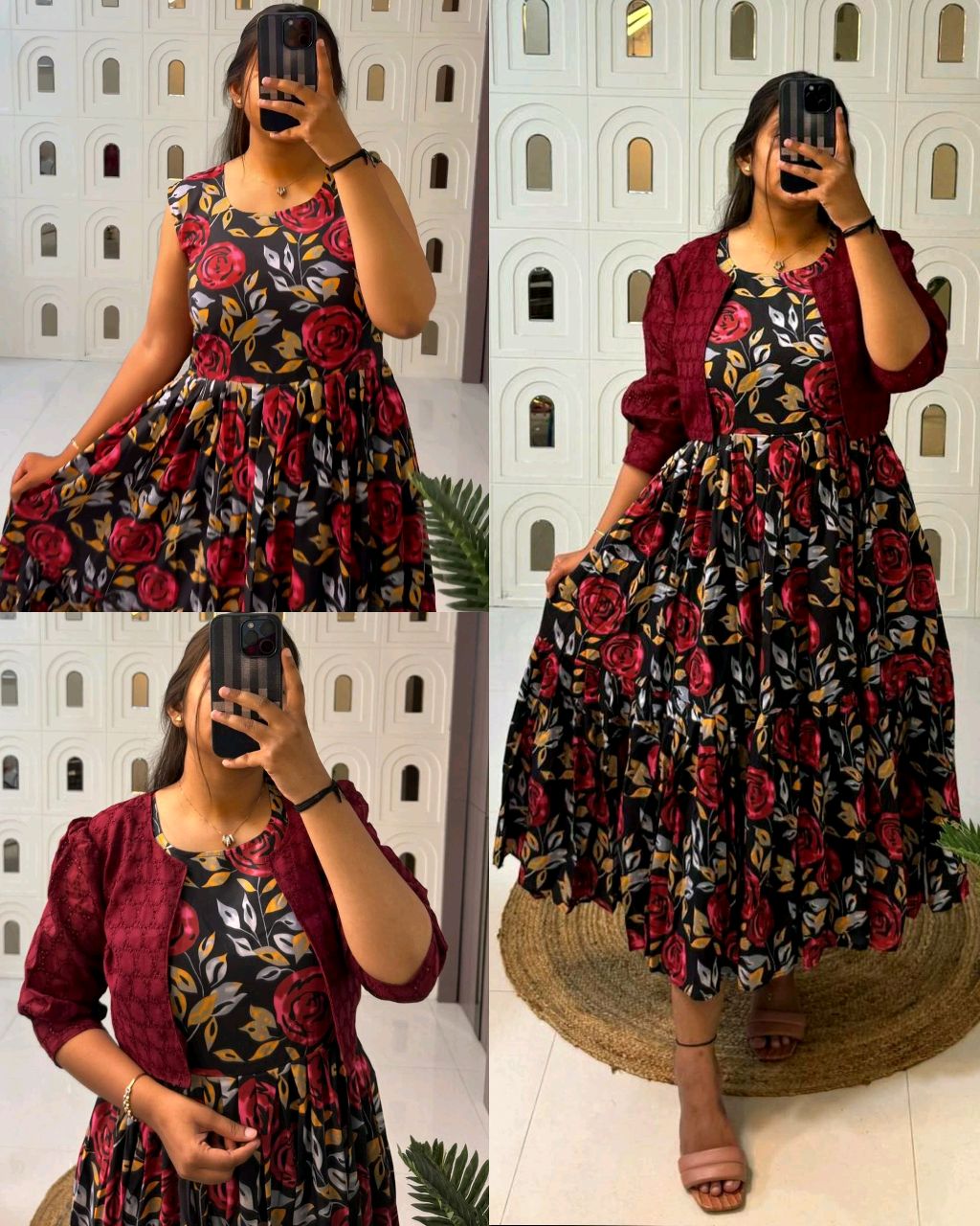 Super Trendy Beautiful flowers print maxi with hakoba koti
