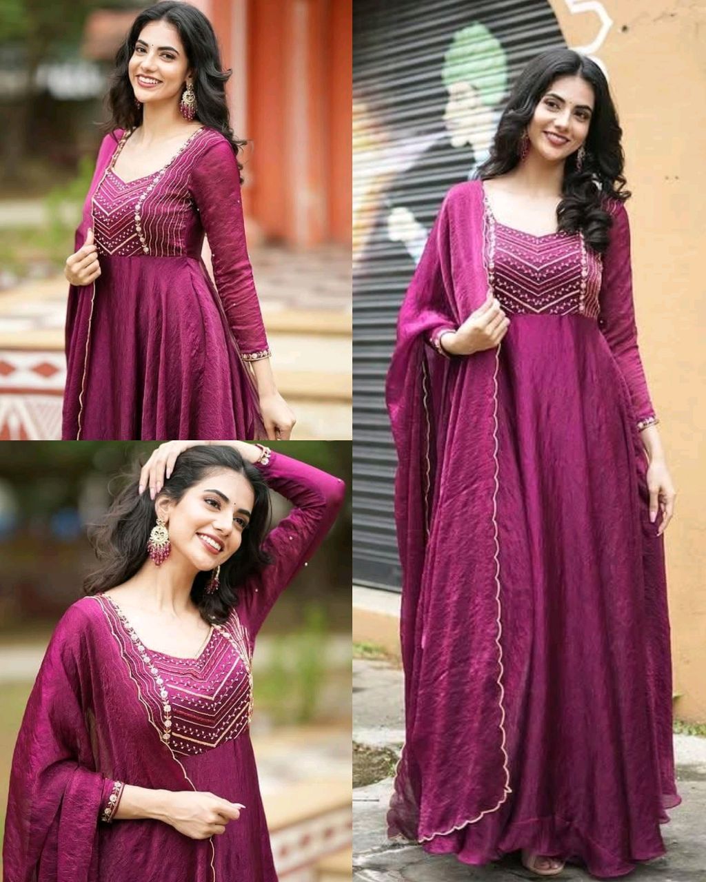 Super Trendy Elegance 🔸Fabric : Chinnon Silk 🔸Complete Linning 🔸Length:- 50″ 🔸Sleeves length 13 inches 🔸Dupptta Fabric:- Chinnon 🔸 Neckline:- Round 🔸BUST SIZE : S – 36, M – 38 in, L – 40 in, XL – 42, XXL – 44