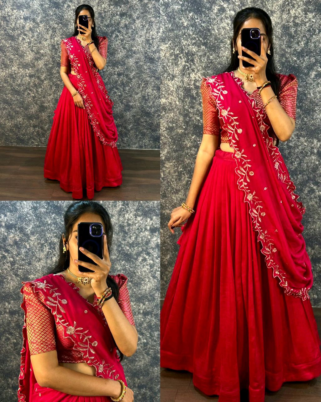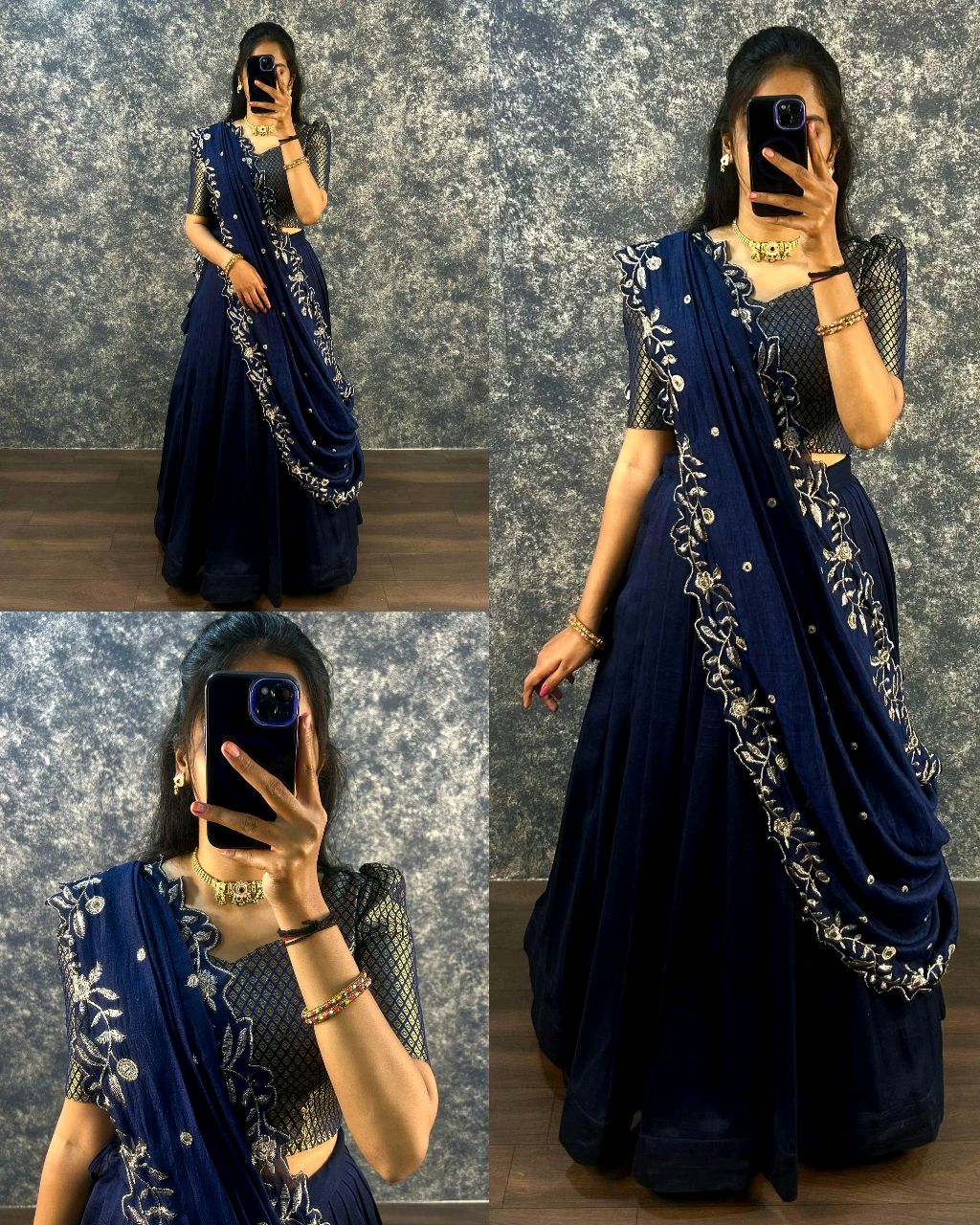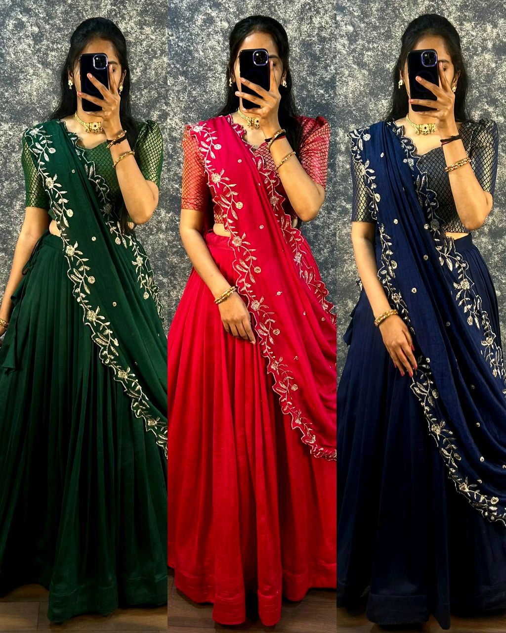 Super Trendy New Full Stitched Lehenga ✨LEHENGA ✨ SOFT VICHITRA SILK WITH 3.5 MTR FLAIR & NONVEN PATTA ✨BLOUSE ✨ HEAVY JEQUARD ✨ DUPPTA ✨ SOFT VICHITRA WITH EMBROIDERY WORK ( 2.50 MTR) ✨PACKAGE ✨ LEHENGA , BLOUSE , DUPPTA 🔸BUST SIZE : S – 36, M – 38 in, L – 40 in, XL […]