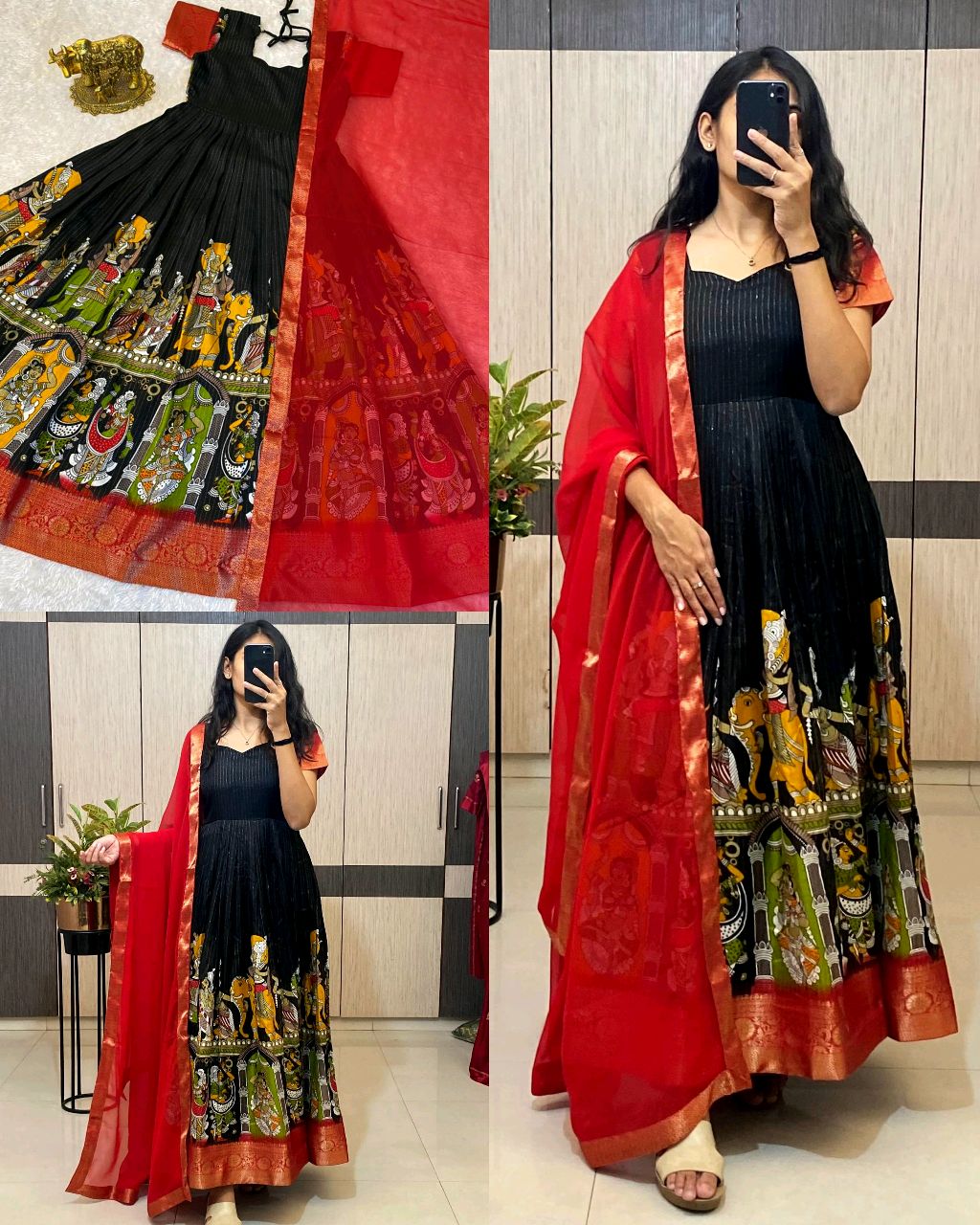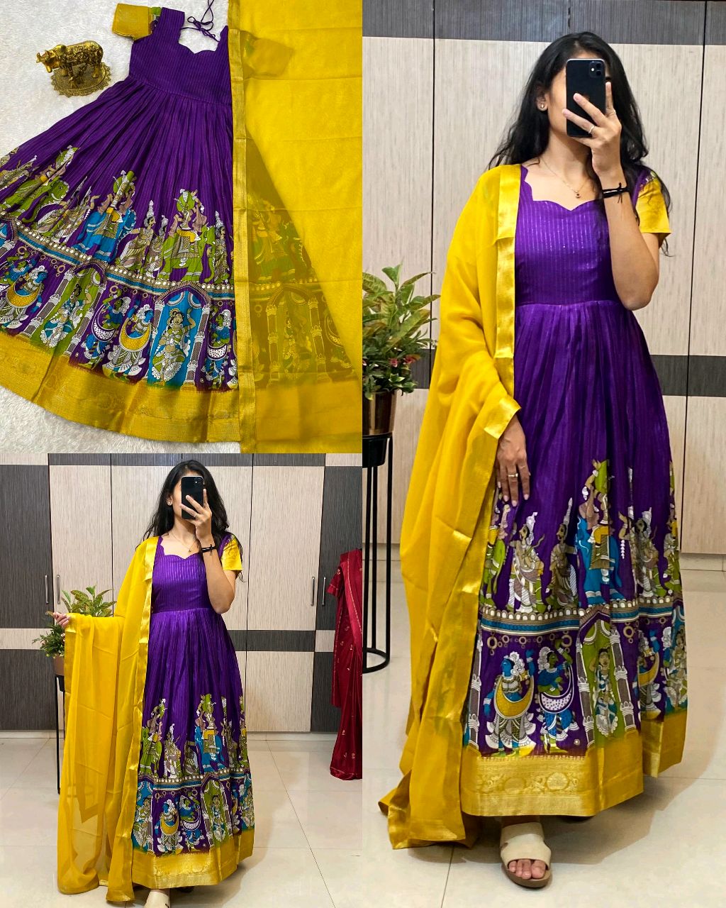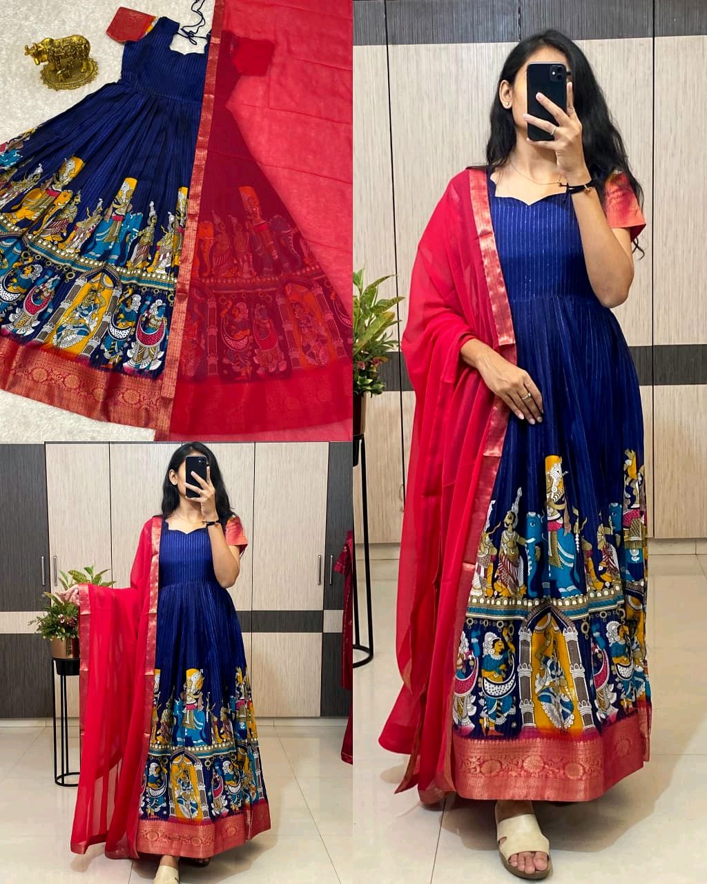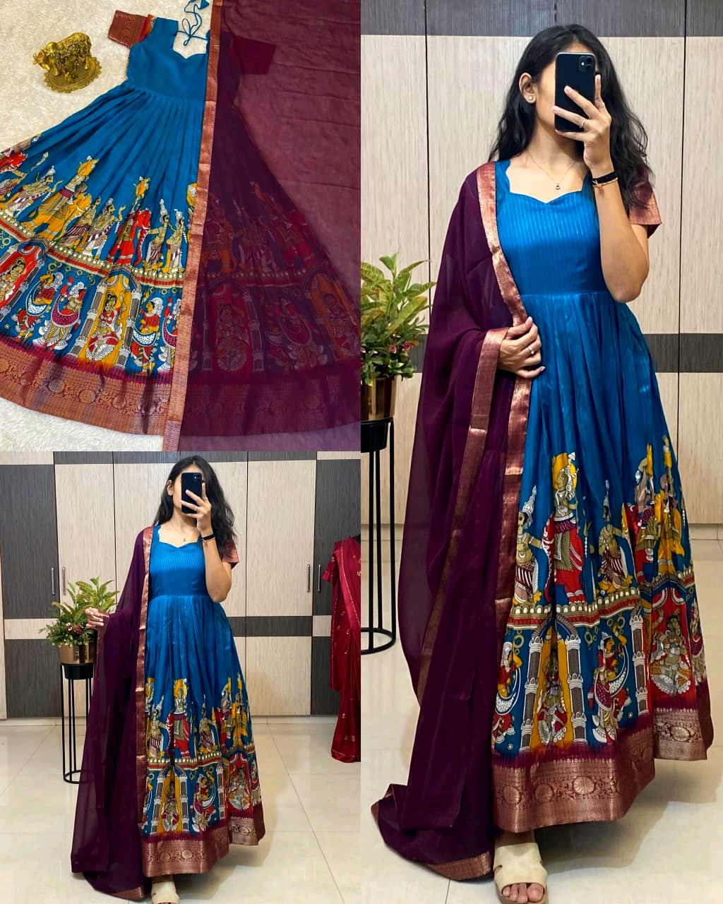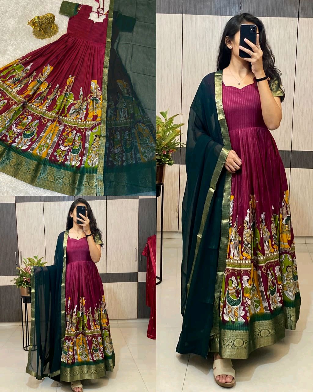 🔸Fabric: fully stitched kalamkari long gown with weaving border*
