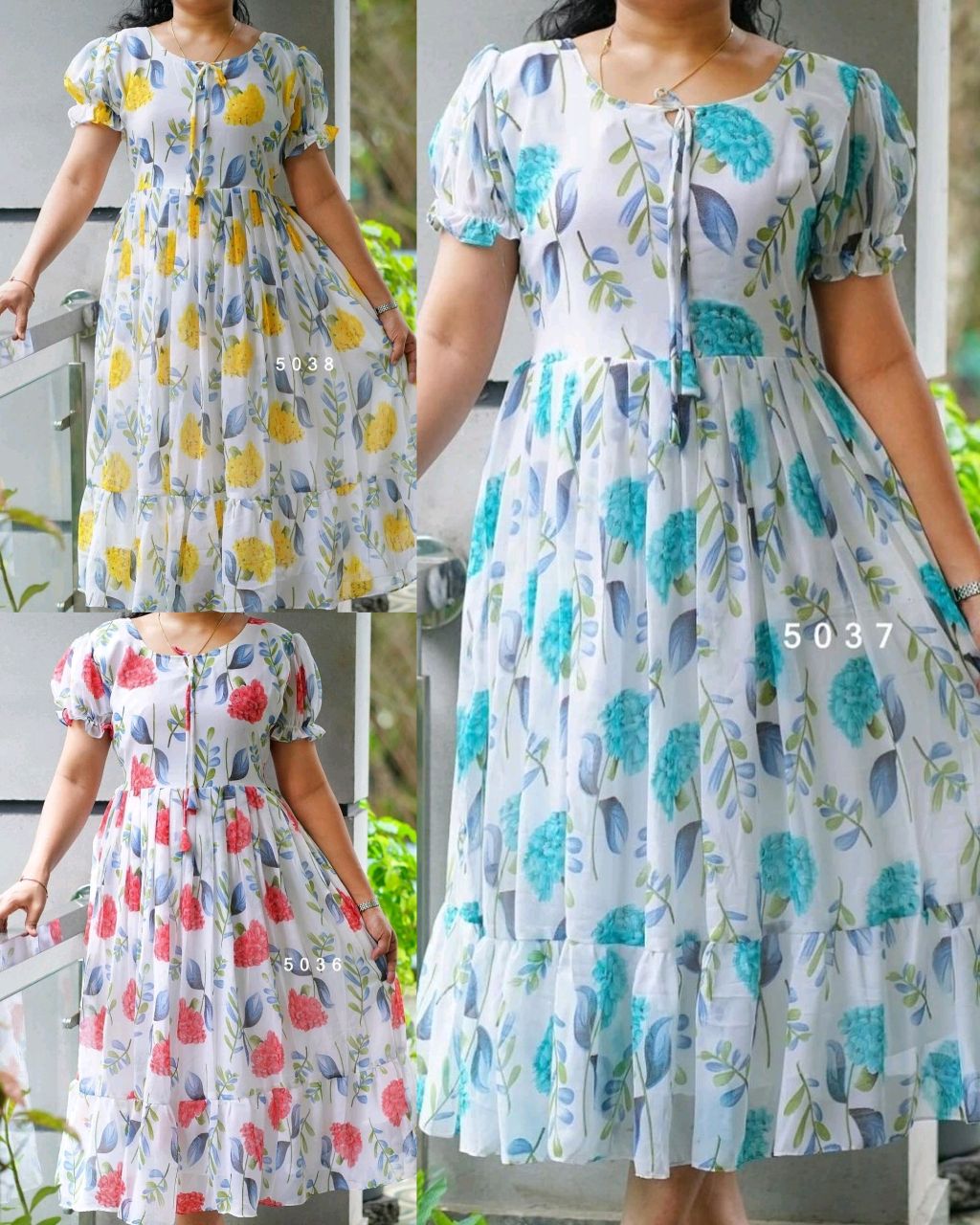 SUPERHIT COLLCTION 🔸Fabric : Gown of digital printed Georgette fabrics with Rufful sleev and Layer 🔸Gown length – 48 🔸SIZE : S(36) M(38) L(40) XL(42) XXL (44) 3XL (46)