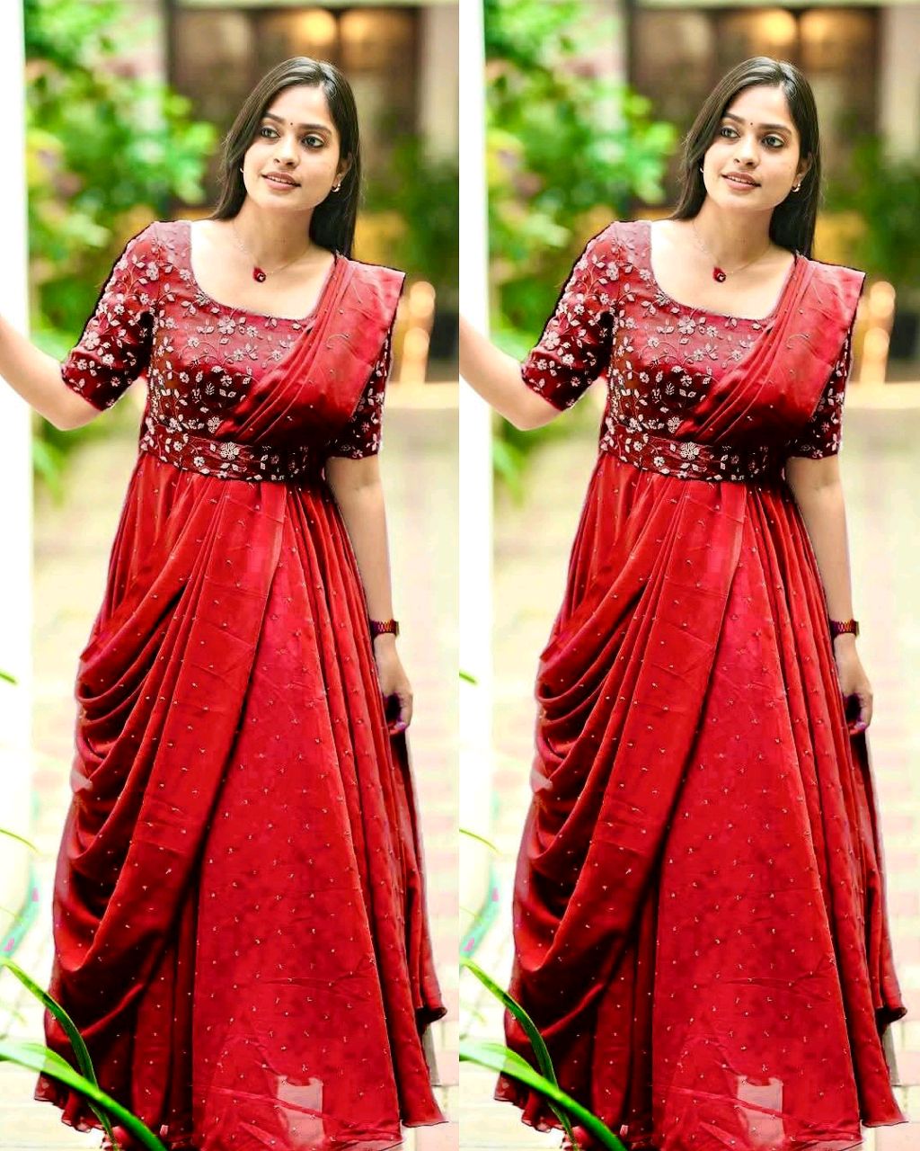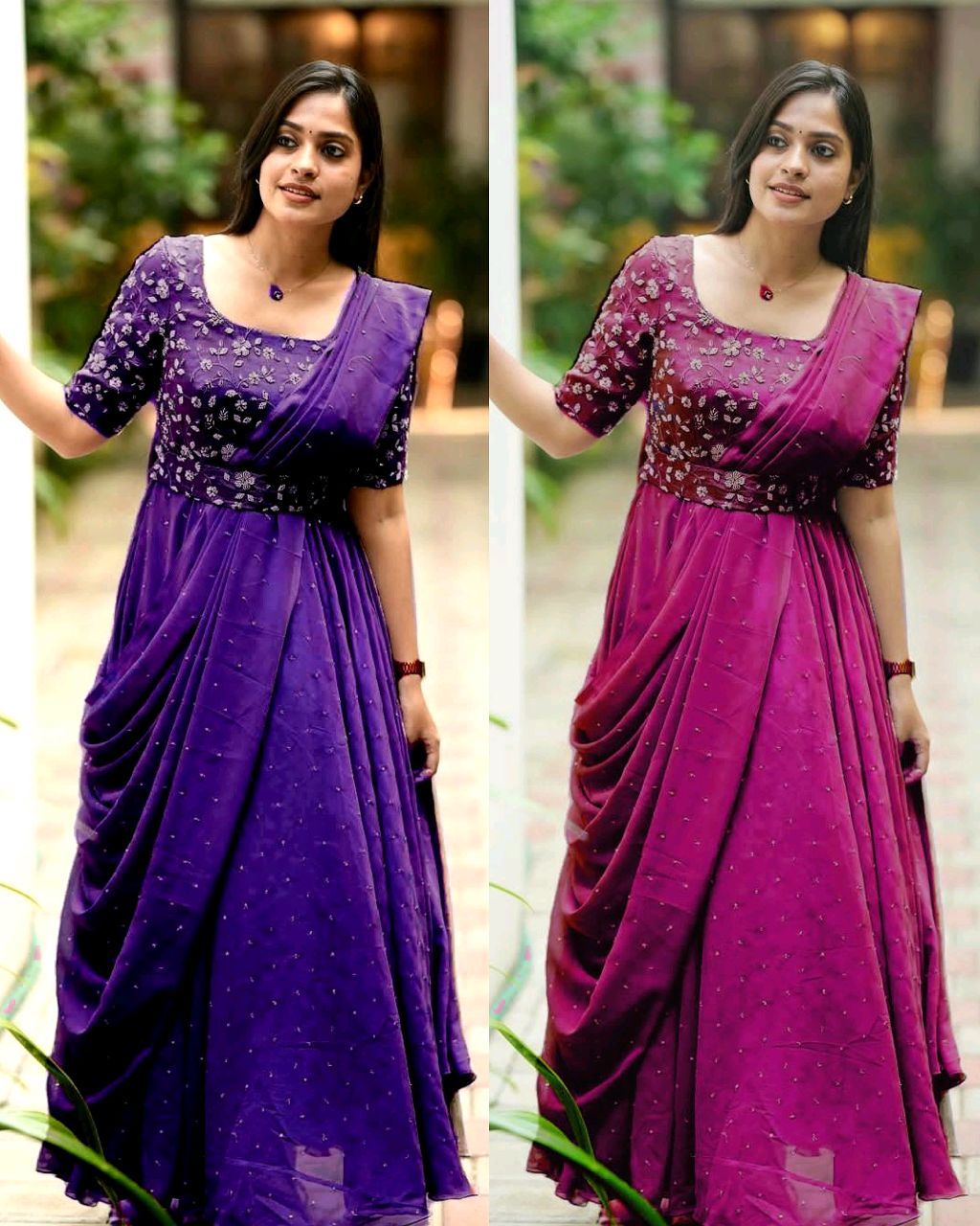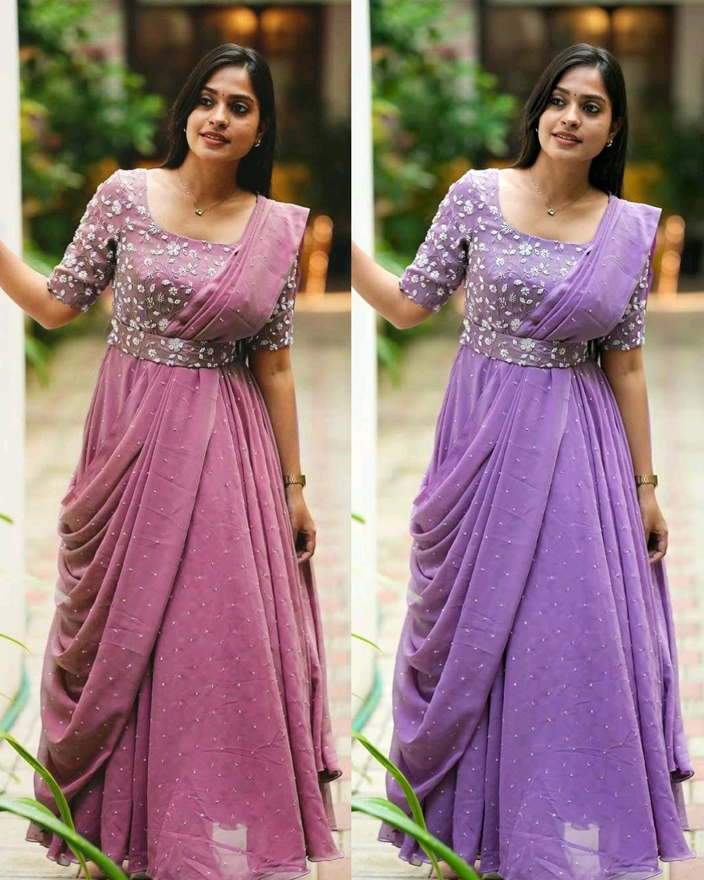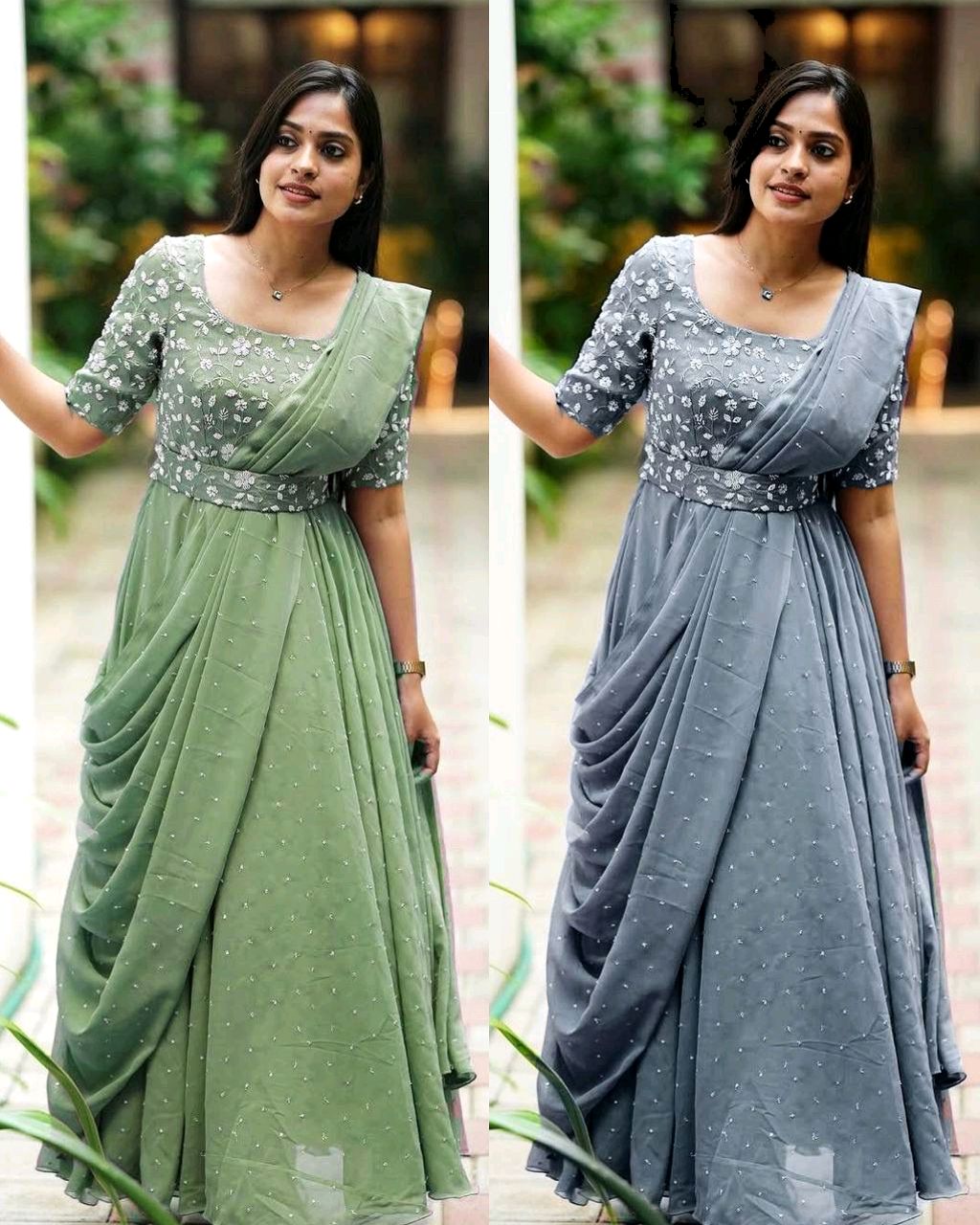 The Beautiful Partywear Gown With Attached Dupatta & Belt ❤️
