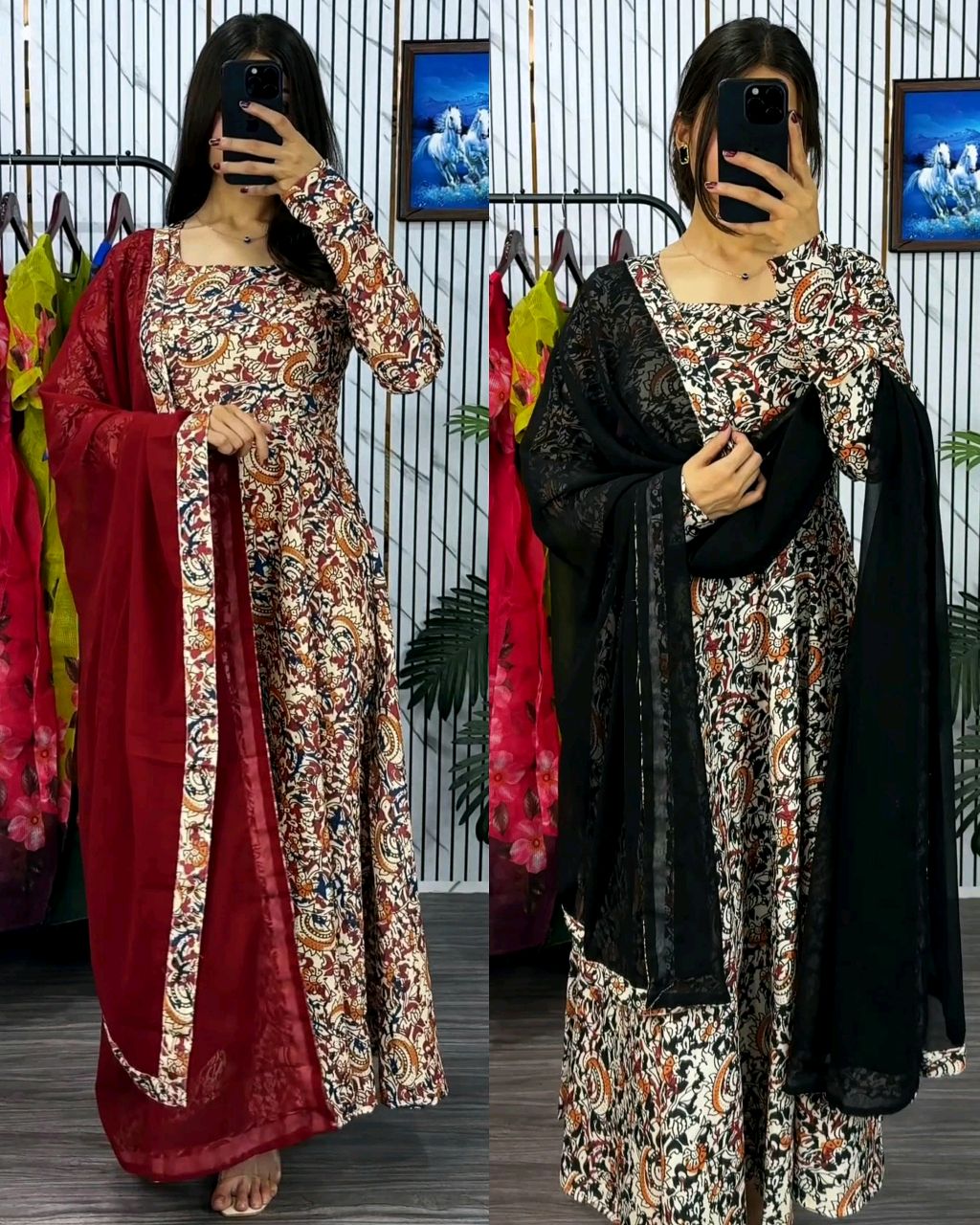 Traditional Kalamkari Graceful Anarkali crafted with modern elegance