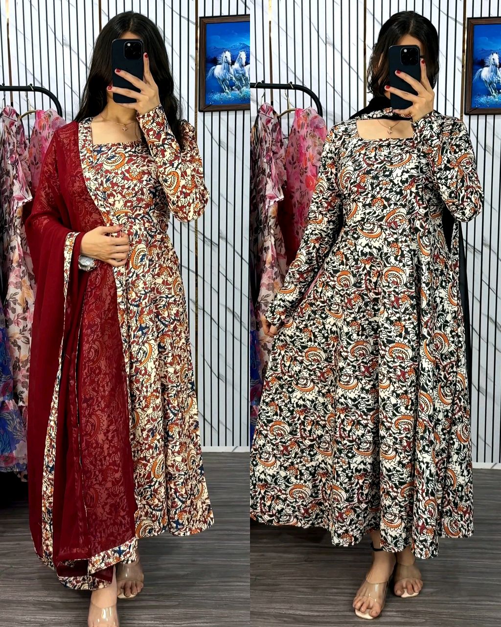 Traditional Kalamkari Graceful Anarkali crafted with modern elegance
