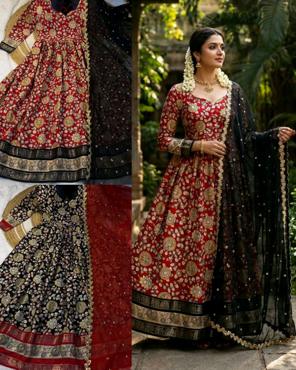 Traditional Kalamkari Graceful Anarkali crafted with Modern Elegance 🔸Fabric: HEAVY SOFT DOLA SILK KALAMKARI PRINTED FABRIC WITH JECARED BORDER ALONG WITH FULL INNER 🔸FULL STITCHED WITH FANCY NECK* 🔸LENGTH:- 55INCH*, *FLAIR :- 4.30 M*) 🔸DUPPATA – EMBROIDERY DUPPATA 4 SIDE LACE 🔸BASIC BUST SIZE : XS – 34, S – 36, M – 38 in, […]