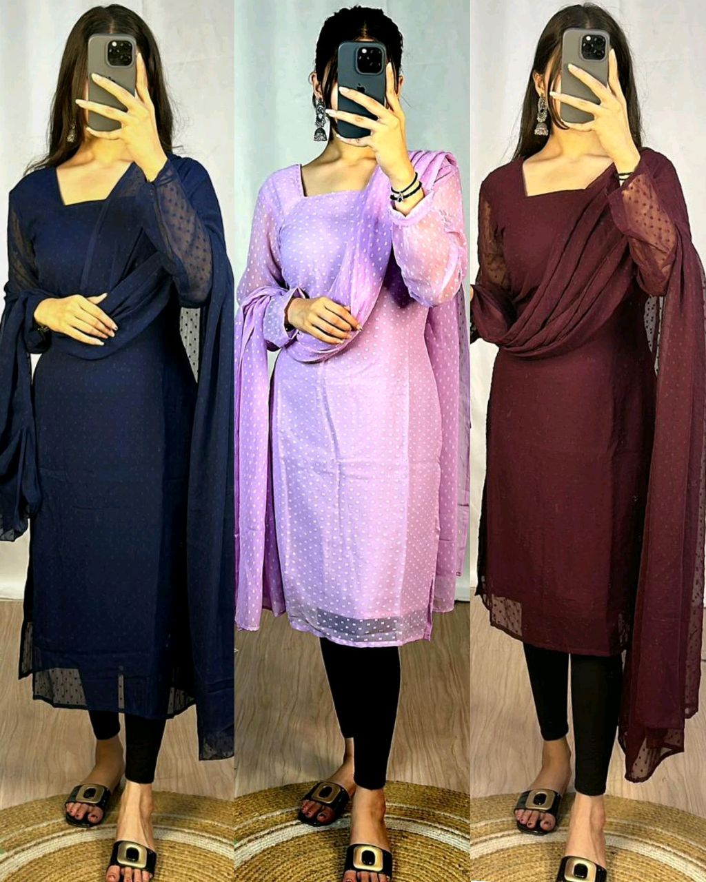 Trending kurti with dupatta with New Colours beautiful colours 🔸Fabric : Georgette 🔸Kurti length: 43 inches 🔸Sleeve: full sleeve 25inches 🔸Dupatta: 2.2mtrs 🔸Complete creape lining 🔸SIZE : S(36) M(38) L(40) XL(42) XXL (44) 3XL (46)