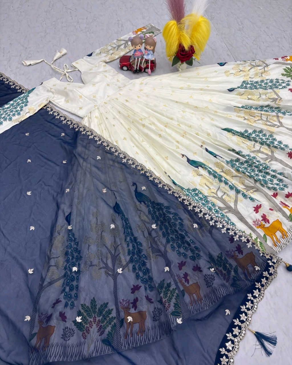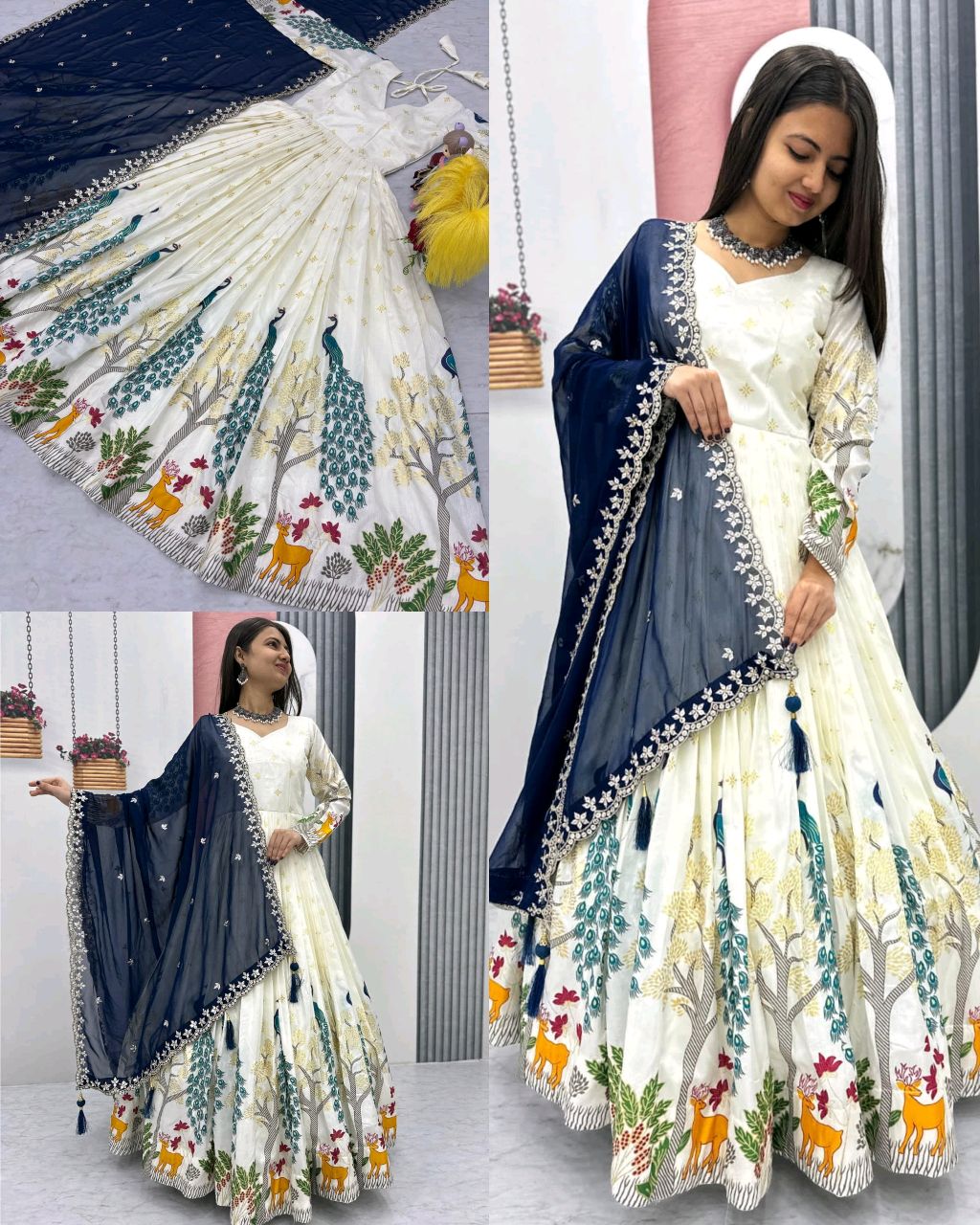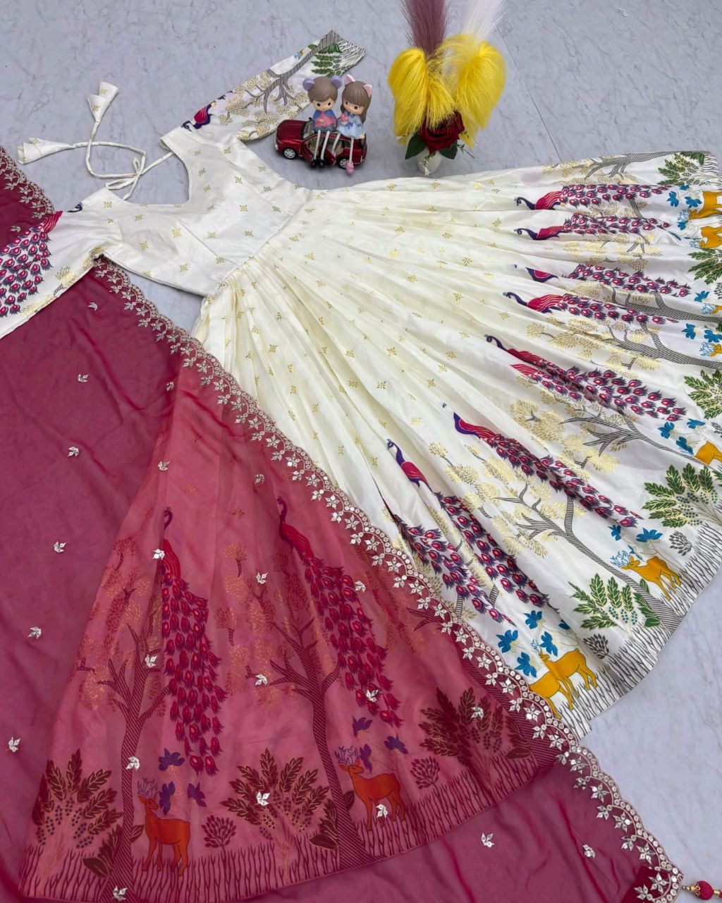 Sold out all size and colour🚫 🔸Fabric: Dola Silk 🔸Work:-* Mill Print & Foil Work 🔸Inner:-* Micro Cotton 🔸Flair:-* 3 Meter 🔸Size:-* M upto L margin XL upto 2xl margin *(Fully Stitched)