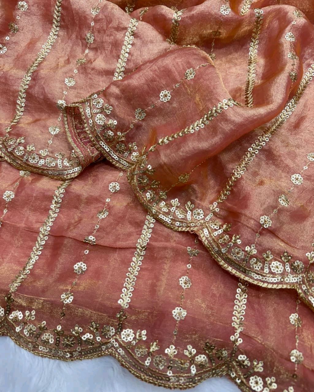 TRENDING SEQUINS SAREE COLLECTION 🔸Fabric: Soft space silk 🔸WORK :* Beautiful Sequence Embroidery Work 🔸BLOUSE : Sequins embroidery work in space silk fabric