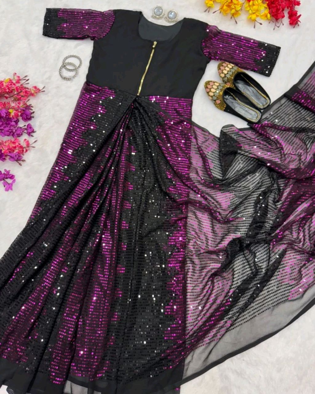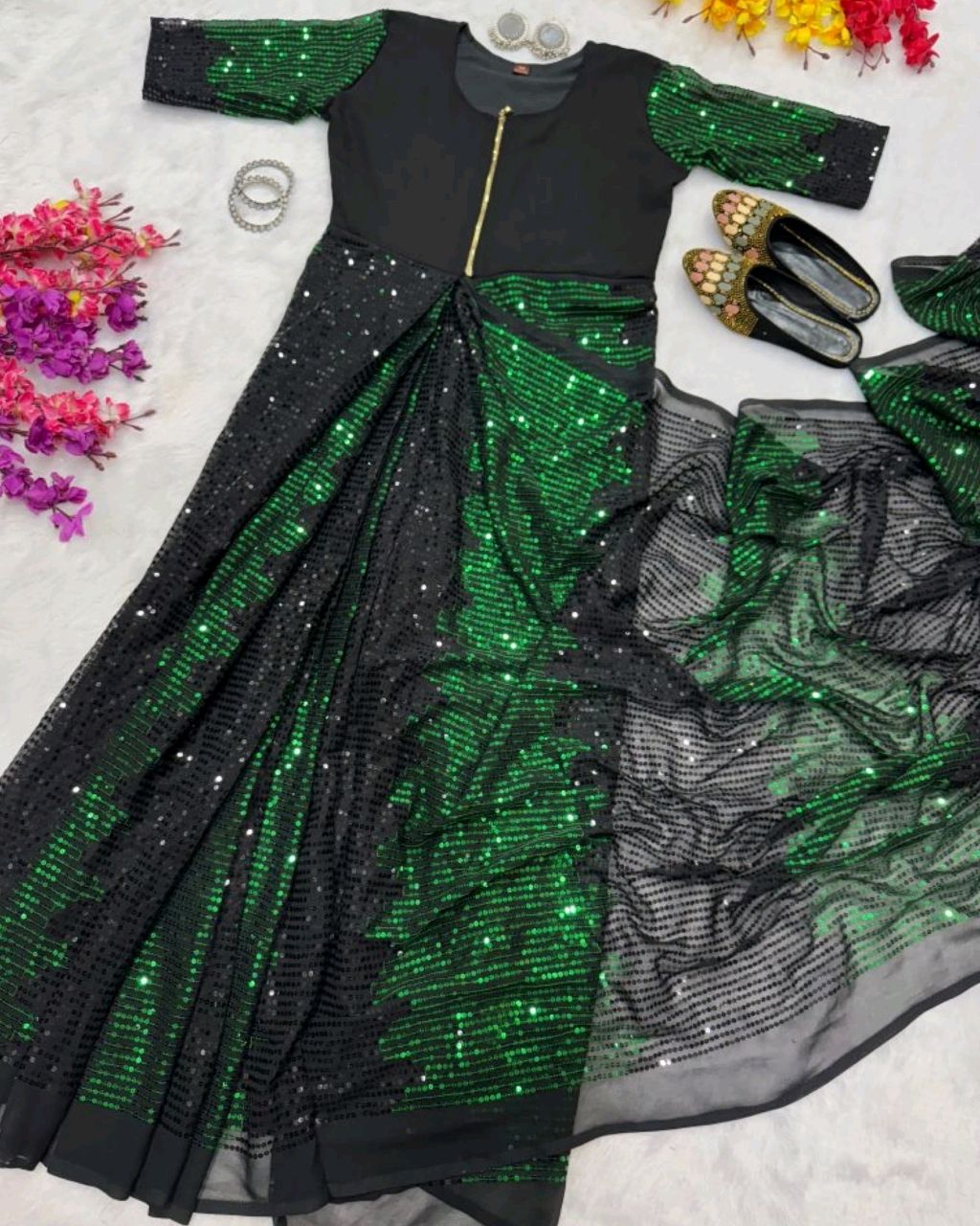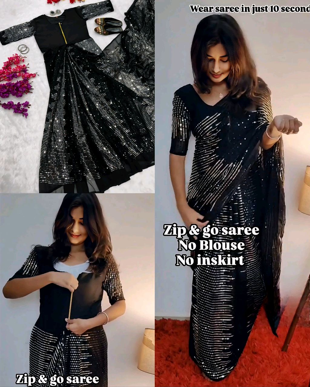 Trending Zip & Go Sequence Saree 🔸Fabric: Faux Gorgette 🔸Work:Two Ton Fully Sequance Work 🔸Length:55-57 🔸Work:Two Ton Fully Sequance Work 🔸Duppata Length:2.5 MTR 🔸BUST SIZE : M – 38 in, L – 40 in, XL – 42, XXL – 44