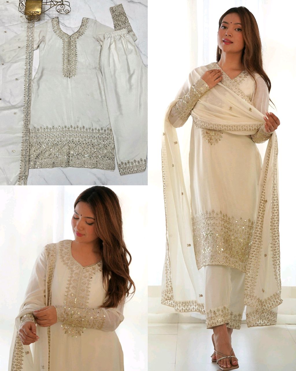 Trendy Beautiful Anarkalis Full Set 🔸Fabric: PREMIUM QUALITY HEAVY PURE ROMANSILK CHANDERI FABRIC 🔸YOKE FANCY LACE PATTERN,PADDED,SIDE ZIPPER,FULLY SLEEVES WITH LACE WORK* 🔸GOWN FLARE*:4 meter plus fully flare 🔸ANARKALI INNER*: PURE MICROSCRAPE FULL LINING 🔸DUPPTA FABRIC*: SOFT NYLON NET DUPPTA WITH BOADER FANCY MIRROR LACE DUPPATA FABRIC 2.20 METER CUT 🔸ANARKALI LENGTH*:48 inch approx 🔸PENT […]