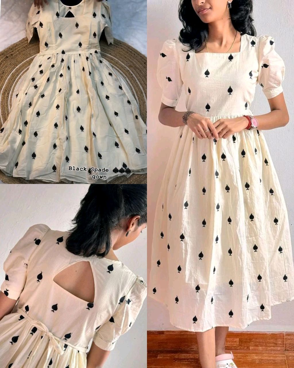 Trendy Black Spade Gown 🔸Fabric: Cotton 🔸Gown Length :- 46+ 🔸BUST SIZE : S – 36, M – 38 in, L – 40 in, XL – 42, XXL – 44