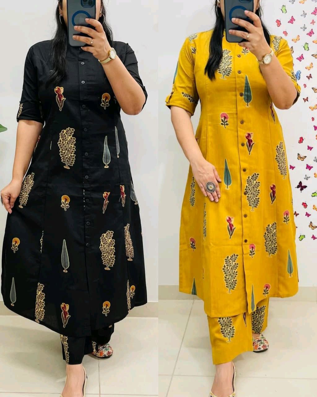 Trendy daily college & office wear Co-ord Set outfit relaxed & comfort fit 🔸 Fabric : Rayon cotton print 🔸Kurti Length : 42 + 🔸Pant length : 38 🔸Kurti & Pant 🔸BUST SIZE : M – 38 in, L – 40 in, XL – 42, XXL – 44, XXXL – 46