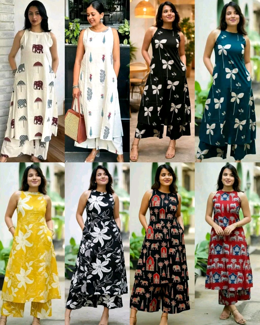 Trendy daily college & office wear Co-ord Set outfit relaxed & comfort fit 🔸 Fabric : Rayon cotton print 🔸Kurti Length : 42 + 🔸Pant length : 38 🔸Kurti & Pant 🔸BUST SIZE : M – 38 in, L – 40 in, XL – 42, XXL – 44, XXXL – 46